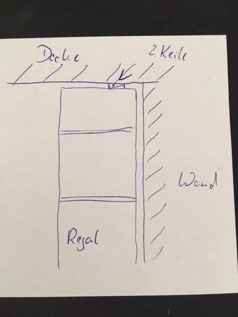 Diskutiere Hilfsmittel als Kippschutz (ähnlich Türspanner) gesucht im Werkzeuge Forum im Bereich Sonstiges; Ich habe ein Regal, dass ziemlich nah an der Decke ist (ca. 3 cm). Daher kann es eigentlich gar nicht umkippen. Da es trotzdem wackelt und mich...