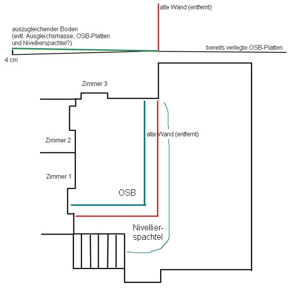 Diskutiere Höhenunterschied von 4 cm ausgleichen im Estrich und Bodenbeläge Forum im Bereich Neubau; Hallo liebe Heimwerkerinnen und Heimwerker, ich baue momentan in einem alten Haus um und habe vor kurzem eine Wand herausgerissen, um den...