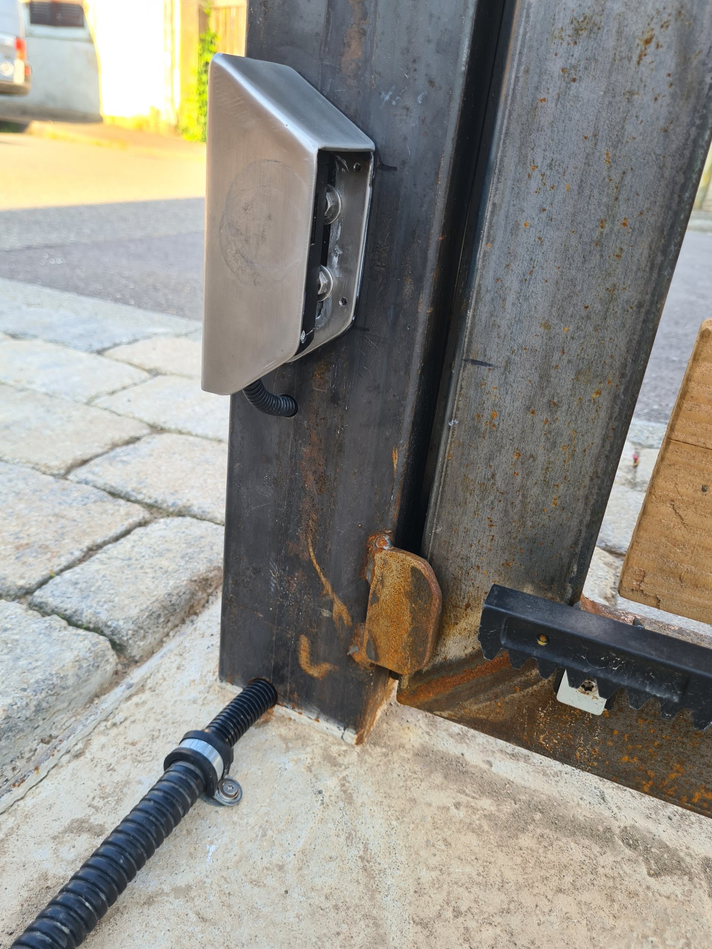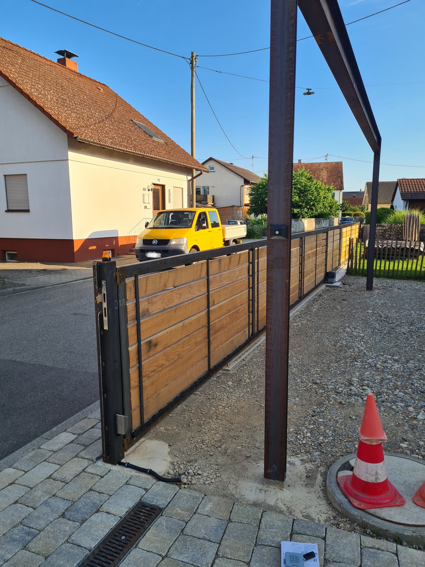 Ich habe 3 Stahl Hoftorpfosten 100x100mm einbetoniert.