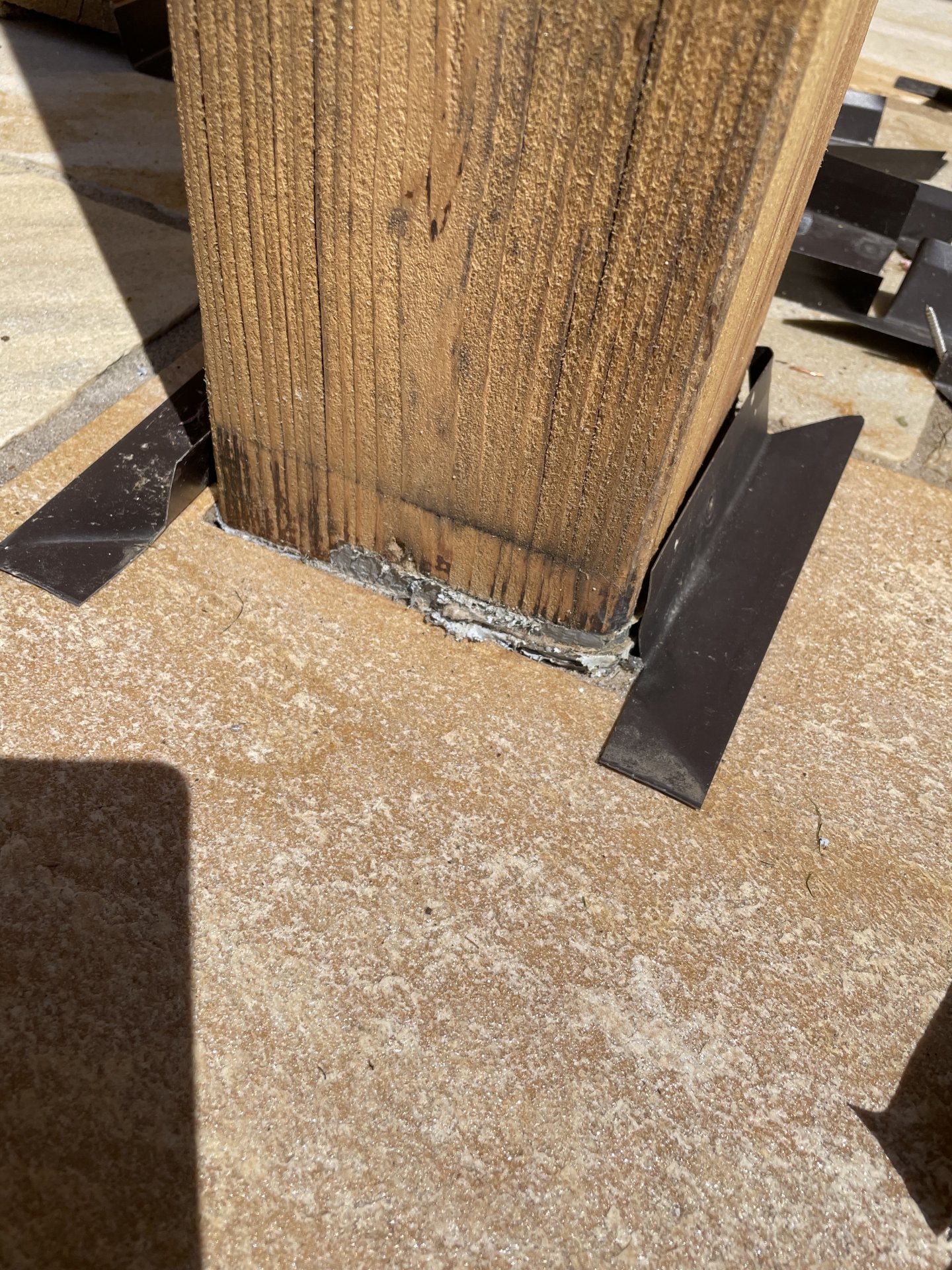 Holz Balkonstützen auf Terassenplatte abdichten