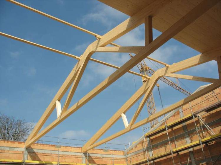 Gipfel der Verwirrung: Fachwerkbinder aus Brettschichtholz.