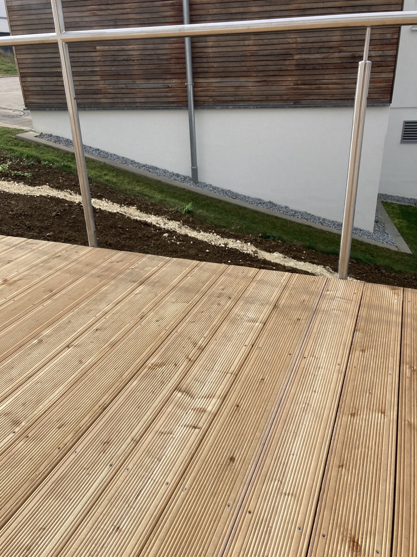 Diskutiere Holzterrasse auf Stahlkonstruktion - Mängel oder okay so? im Außenanlagen Forum im Bereich Rund um den Garten; Liebe Bauexperten, bei uns wurde eine Holzterrasse auf einer Stahl Unterkonstruktion als separat geständerter Vorbau zum Haus gestellt. Das...