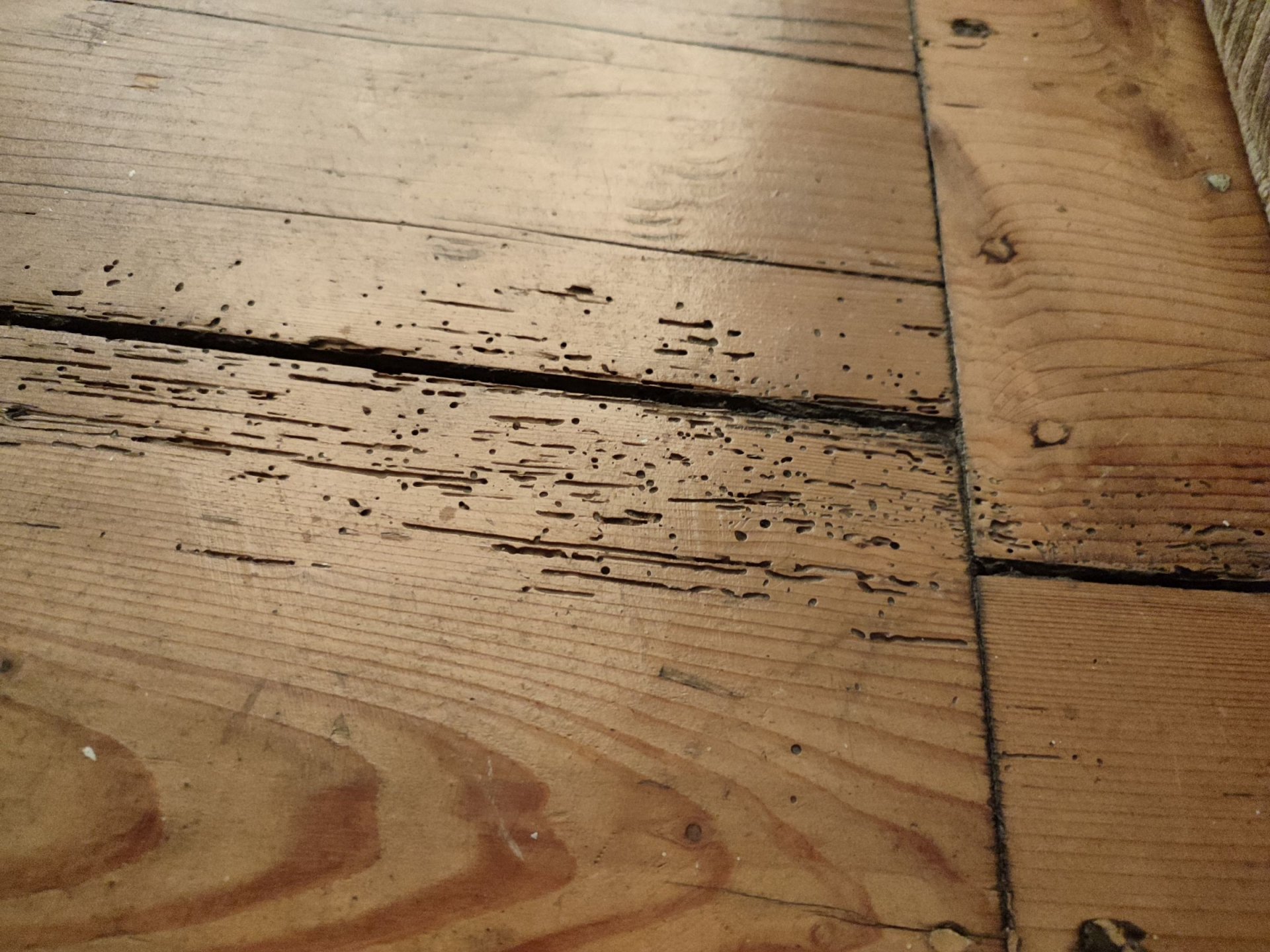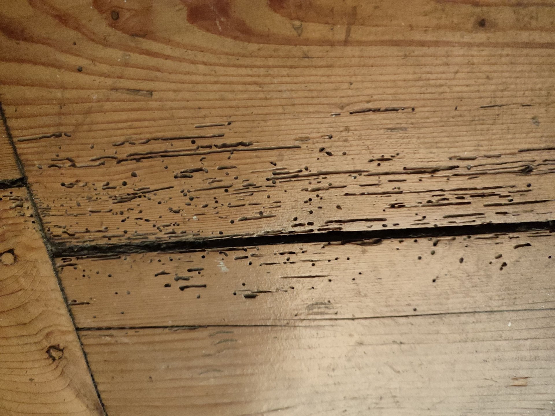 Holzwurmbefall: Die Dielen (ca. 110 Jahre alt) wurden vor ca. 10 Jahren geschliffen und lackiert. Ein Altbefall war vorhanden und nach der Sanierung auch... -