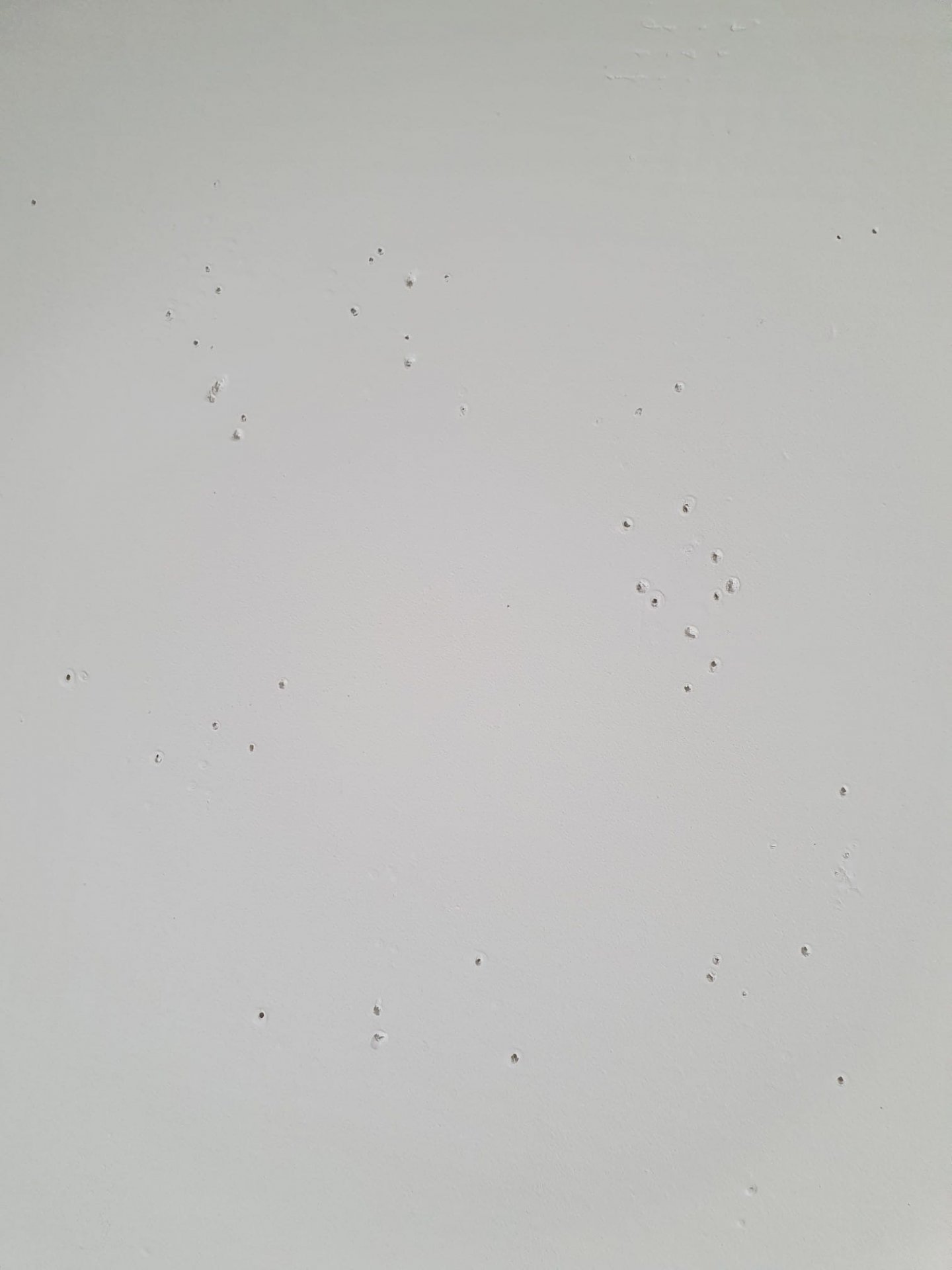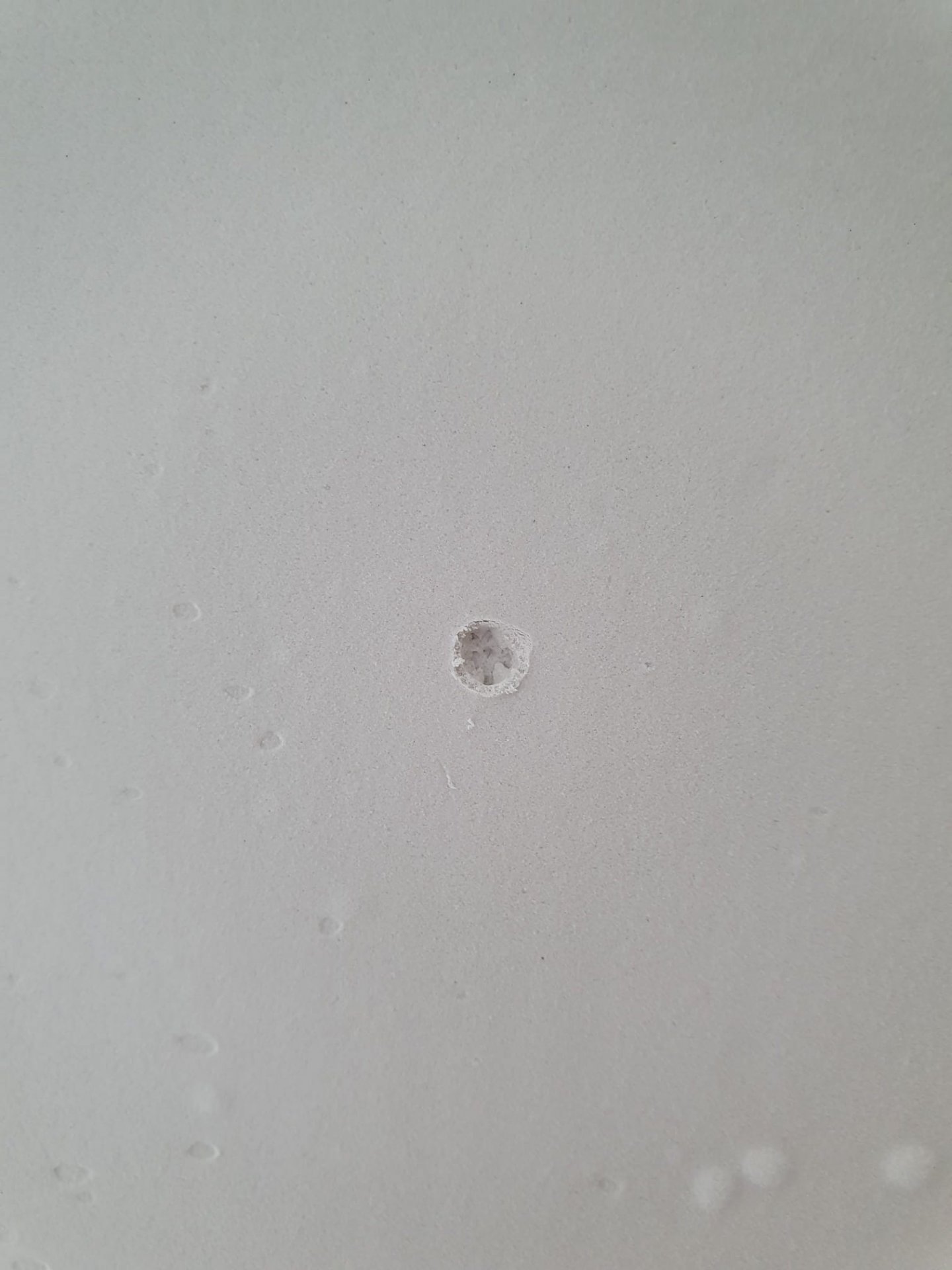 Kommt das vom Perforieren der Tapete (habe doch ziemlich stark aufgedrückt, so dass man die Löcher auch im alten Putz sieht.)