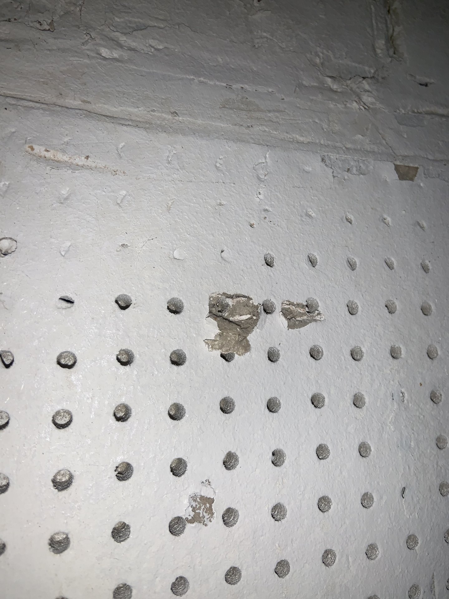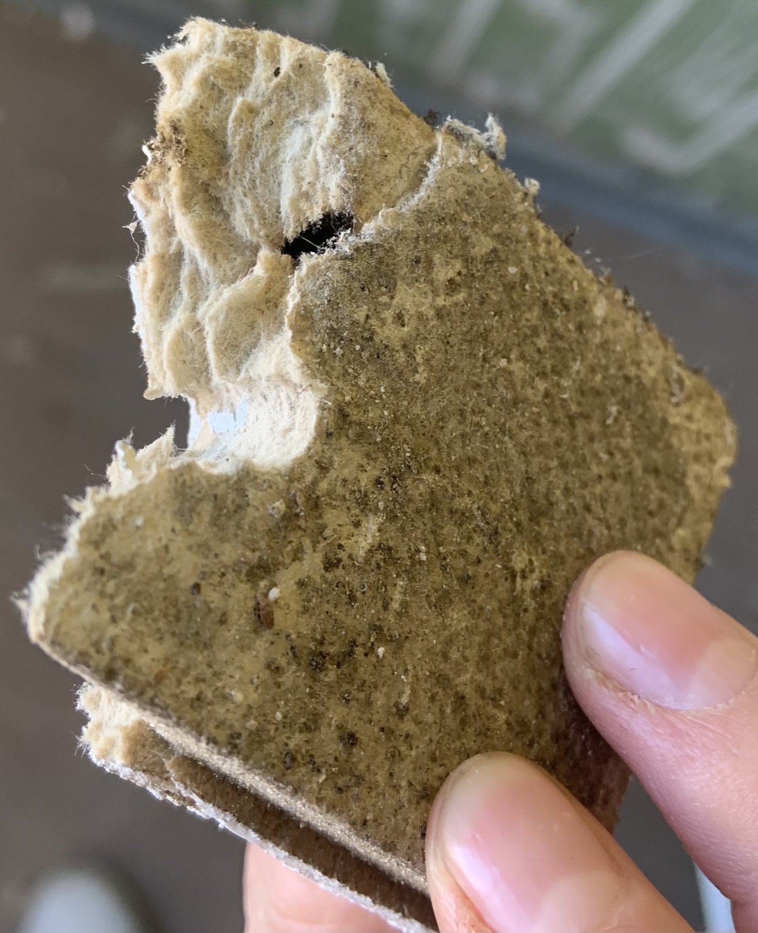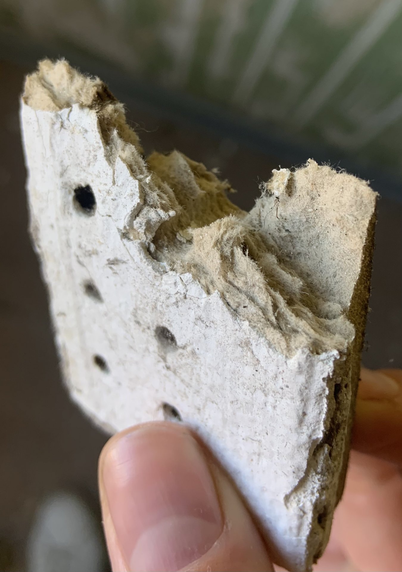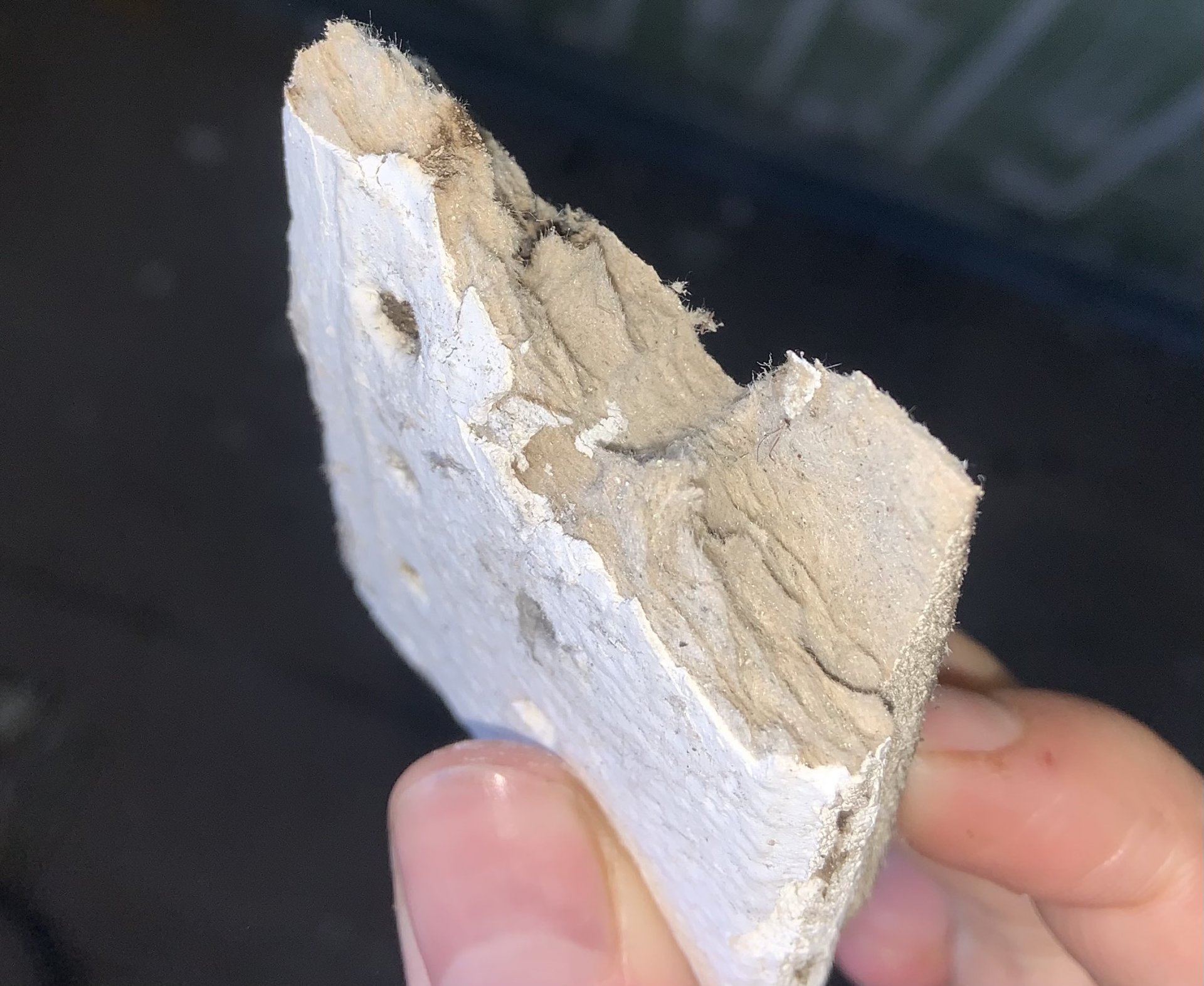 HILFE! Was ist das für ein Material? Asbest? :O: Hey Leute, in meiner Mietwohnung im Dachgeschoss ist ein echt abgedrehter Innen-Wandaufbau: An der Dachschräge ist Tapete auf dünnes Styropor...