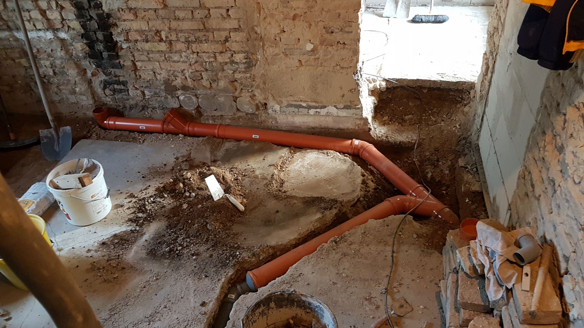 wir müssen/wollen bei unserer Sanierung einen Abfluss umlegen. Der Kanalanschluss auf dem Foto rechts unten soll stillgelegt werden, weil dieser in ein altes Steingutrohr mündet, was eventuell undicht sein könnte. Sicher ist sicher...