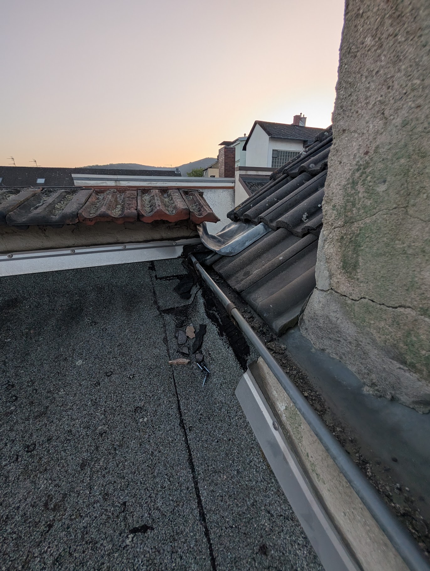 Tropfen Dachunterseite / unter Regenrinne: Guten Tag, mir ist aufgefallen, dass unser Dach während und kurzzeitig nach Regenschauern an einer Stelle an der Dachunterseite tropft. Zum einen...