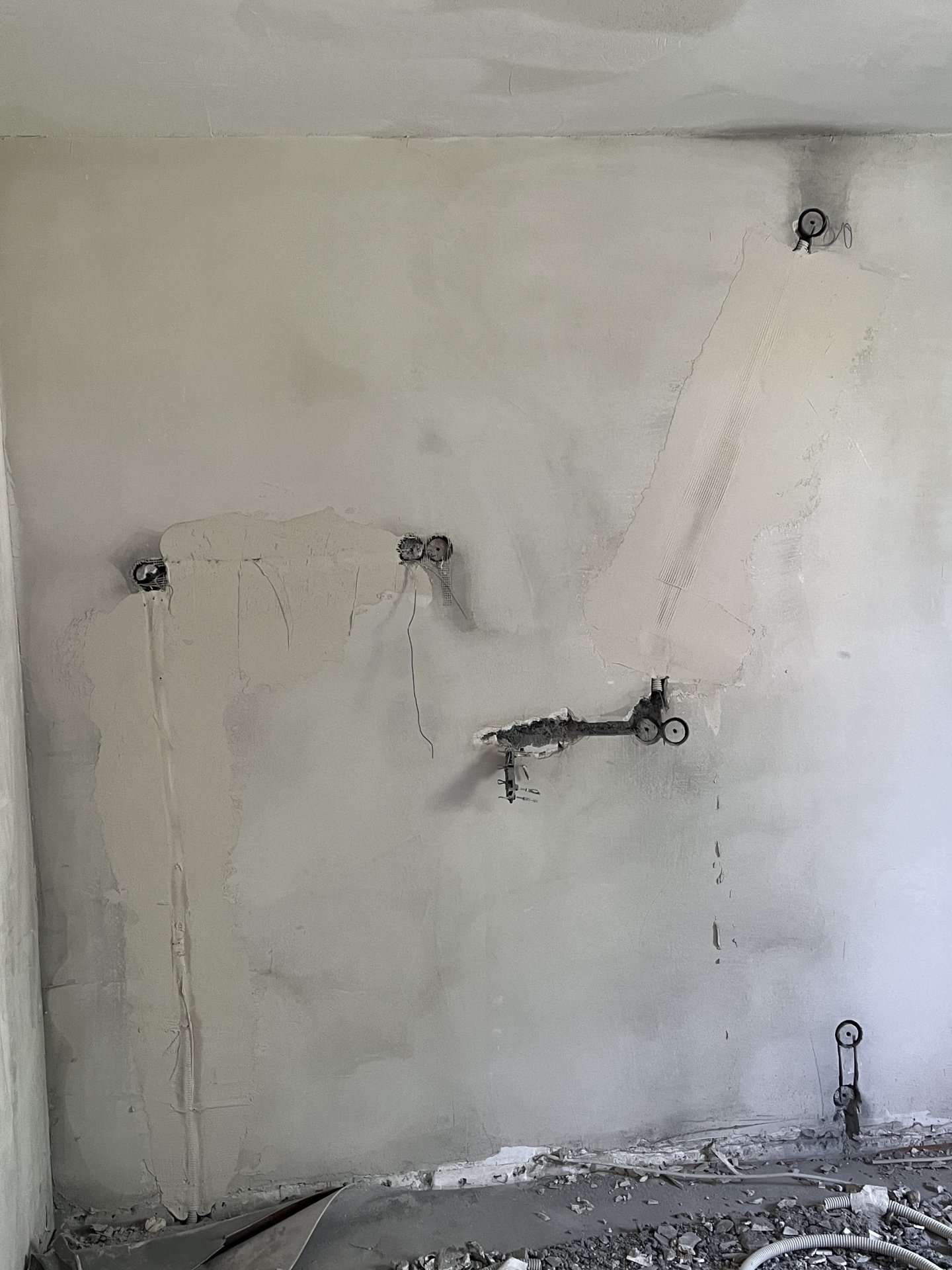 Irgendwer soll da mal eine Küche einbauen und vielleicht Löcher für Hängeschränke bohren. So darf man Leitungen nicht verlegen.