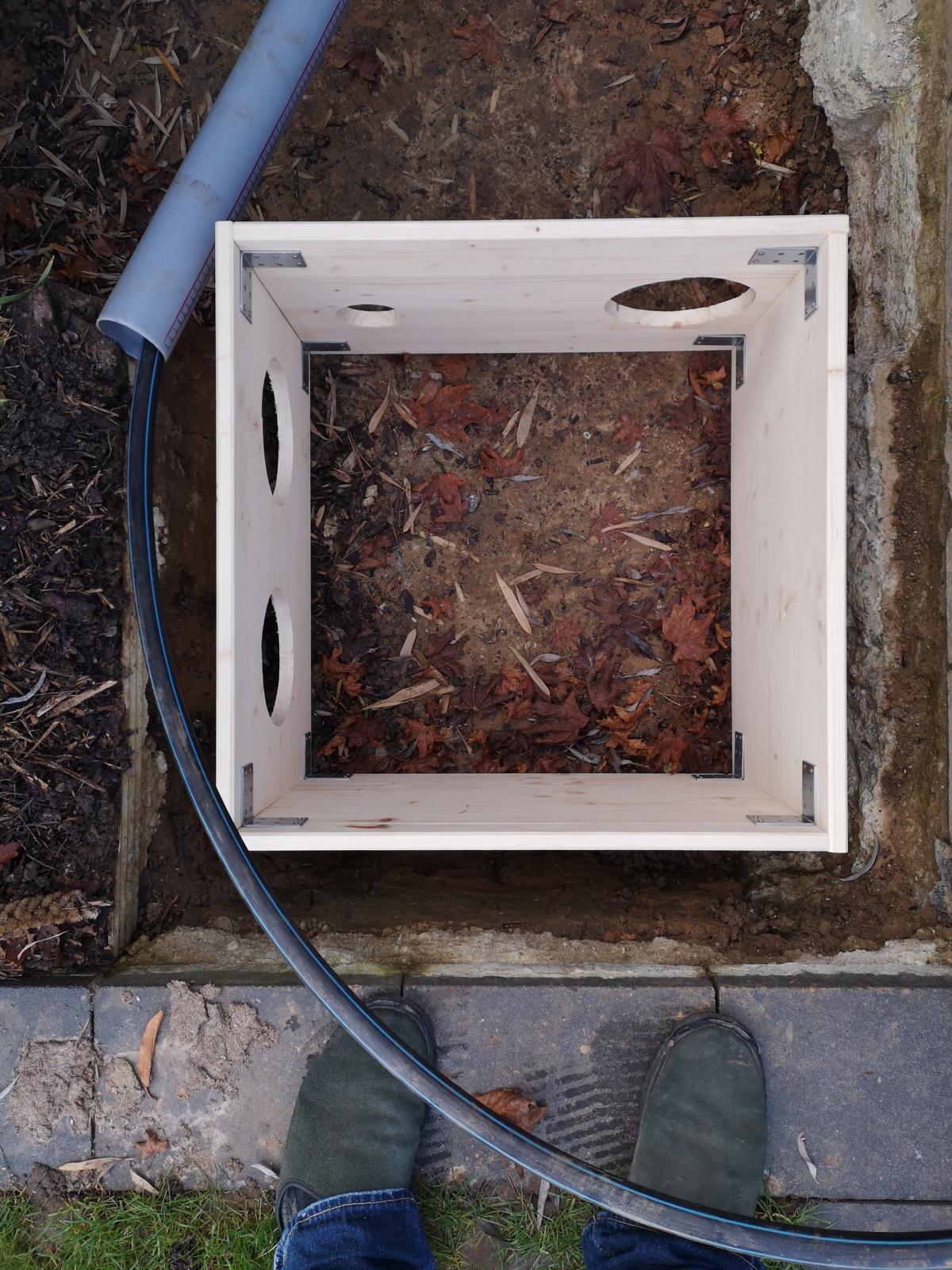 "Kasten" für eine Rückstauklappe: Hi, ich möchte ein altes Ton Rohr was zwischen Haus und Garage liegt ersetzten. Es ist verschoben und undicht. Dadurch drückt von von beiden... -