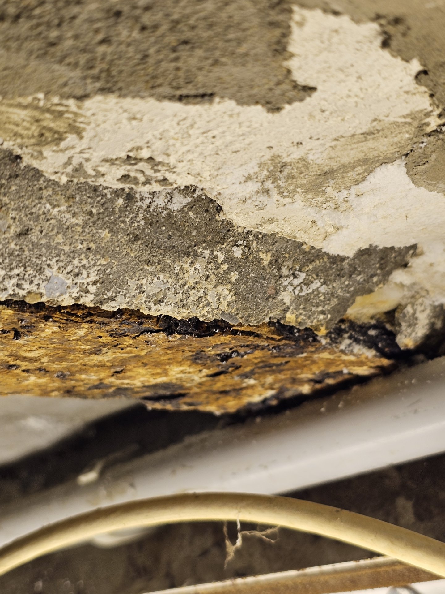 Die Stahlbetondecke liegt auf Trägern die im Wandbereich ziemlich verostet sind.
