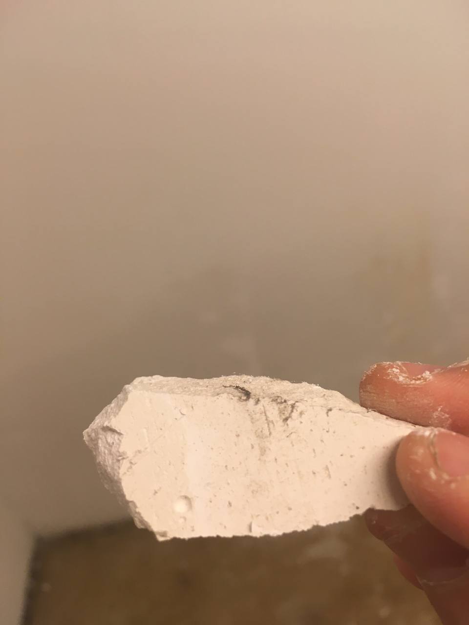 Ich schätze, dass die Wand 10-15 cm dick ist. Ich habe nach Bildern von Gipsdielenwand gesucht und sie sehen sehr ähnlich aus. Auch die Größe der "Ziegelsteine" sieht ähnlich aus wie auf den Webbildern von Gipsdielenwand.
