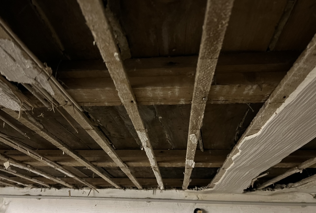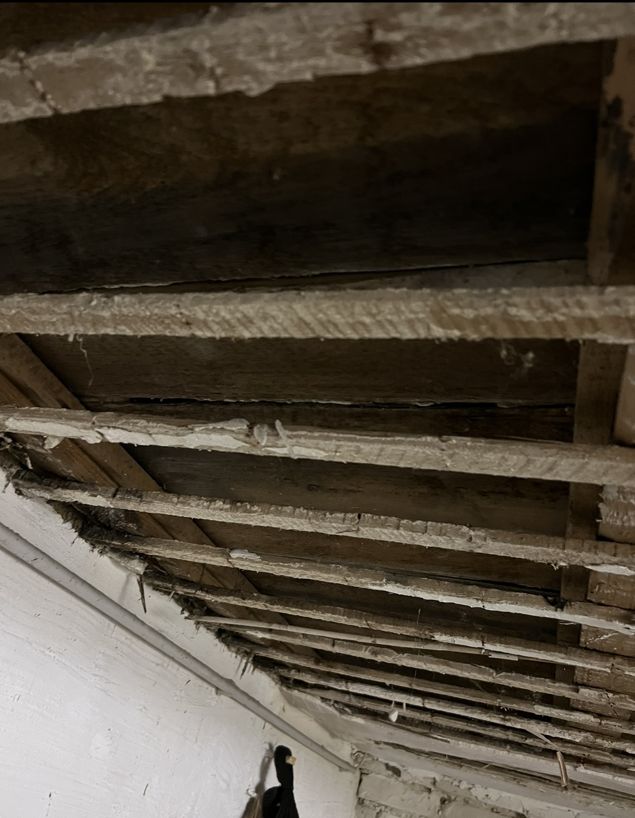 Schwarze zähflüssige Tropfen Kellerdecke - Altbau