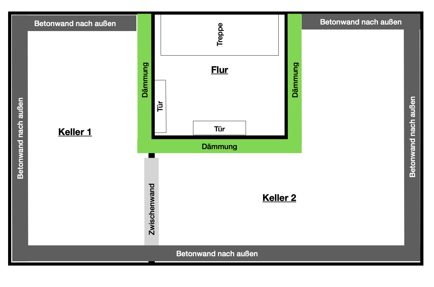 Die bereits gedämmten Wände grenzen an einen Flur. Ich habe das hier mal laienhaft skizziert...