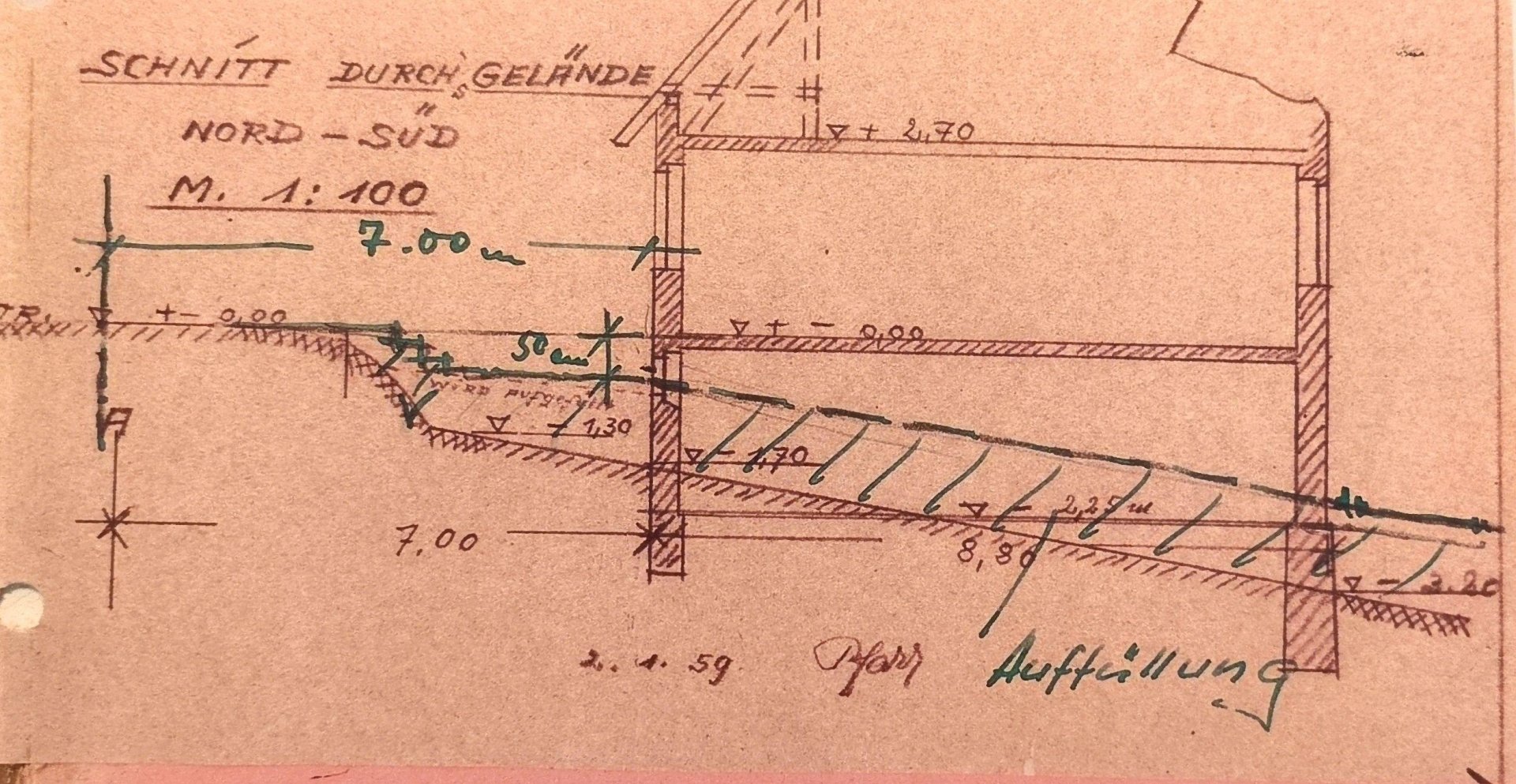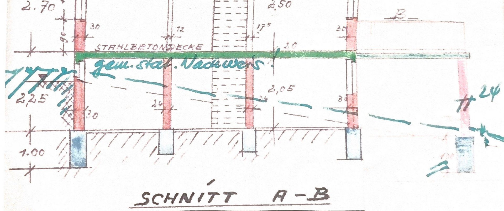 Kellersanierung 1958: Abdichtung Bims-Hohlblock auf -2,40m in Hanglage