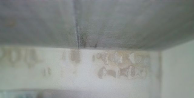 Die Flecken sehen schon verdächtig nach Steinformat aus. Wasser von oben fliesst eigentlich nach unten.