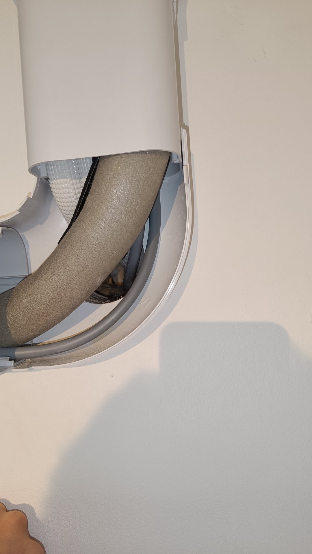 Aber was ist denn mit der Kernbohrung nach draußen durchs Mauerwerk? Ist da Baumschaum/Brunnenschaum korrekt? Draußen hängt ja auch noch eine Abdeckkappe über dem Ausgang.