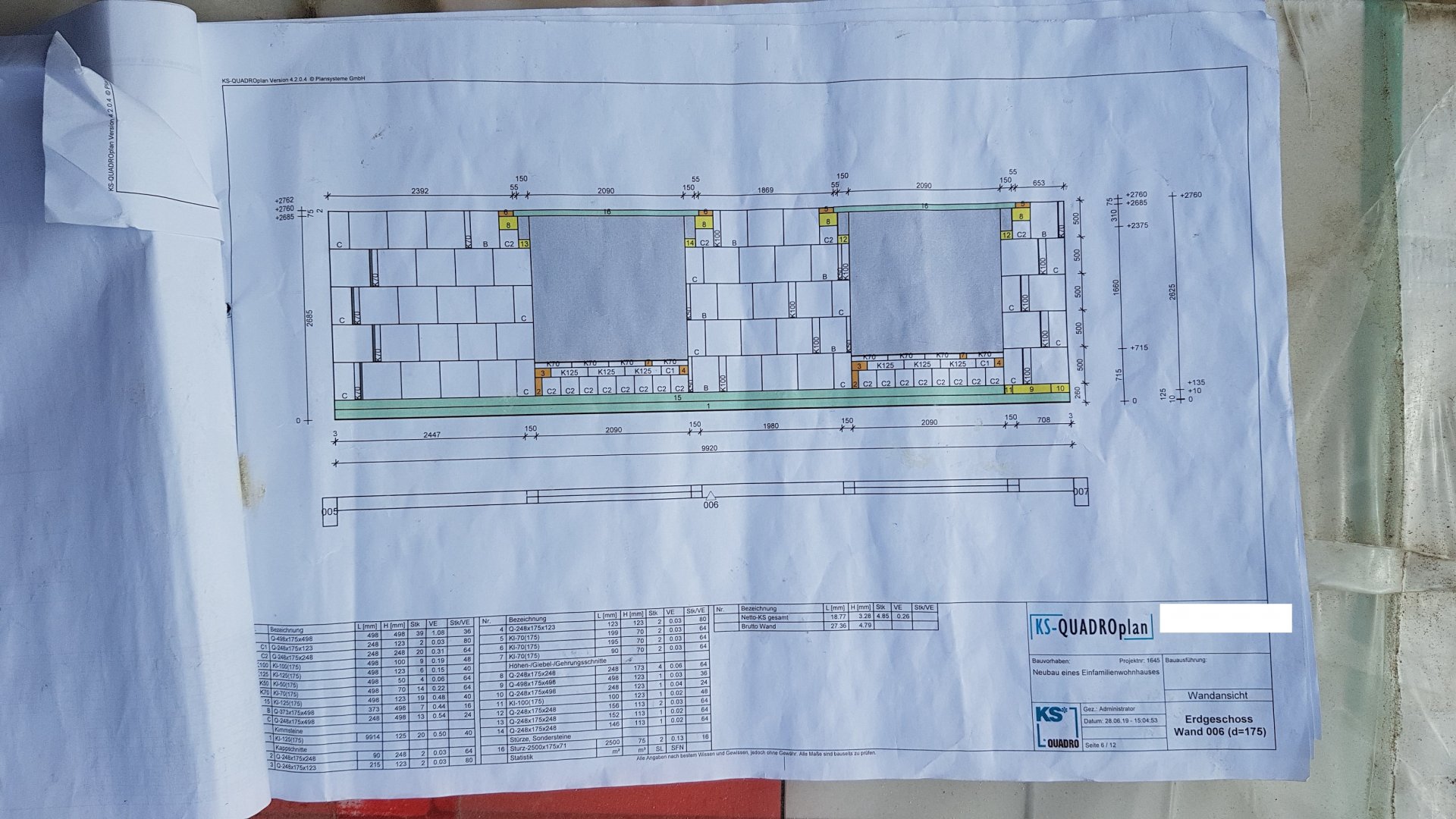 Warum man dort 5cm breite und 10cm breite Streifen einbaut, wenn man doch 498x498er KS Quadro Steine hat, erschließt sich mir nicht, aber so wurde es alles statisch berechnet, geprüft und mit dem Programm "KS Quadro Plan" erstellt, hier ein paar Bilder, die zeigen, wie es geplant wurde und, dass alles so, wie es ist seine Richtigkeit hat - ich war und bin noch total baff!!