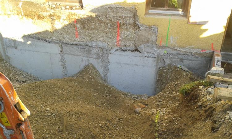 Diskutiere Kleiner Riss über Unterfangung im Tiefbau Forum im Bereich Neubau; Hallo, ein Altbau mit Stampfbetonfundamenten wurde unterfangen. Nach Entfernen der Schalung zeigte sich folgender kleiner Riss: Er wurde dann...