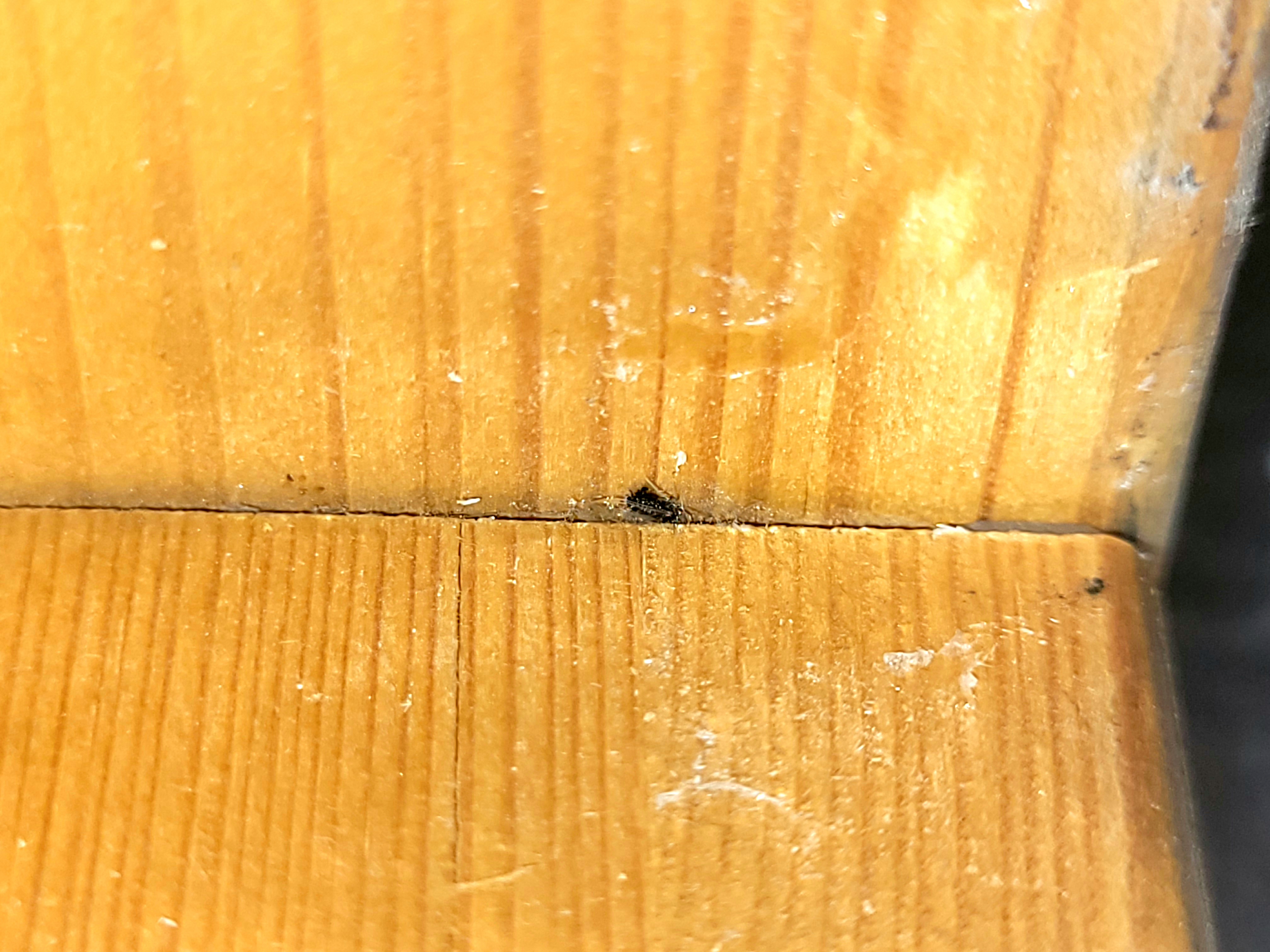 Diskutiere Könnte das ein Schädling sein? im Dach Forum im Bereich Neubau; Hallo zusammen, Ich habe bei der Treppe, wo es zum Dachspitz rauf geht, da wo die Holzplatten zusammenkommen ein Stück Heisskleber entfernt und...