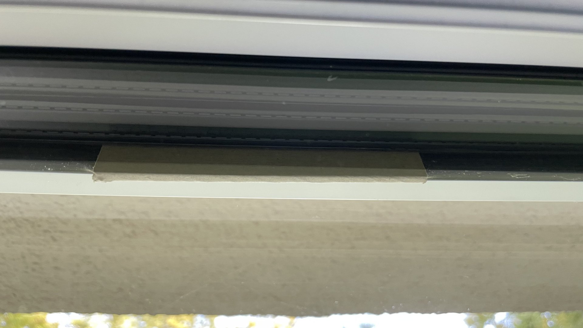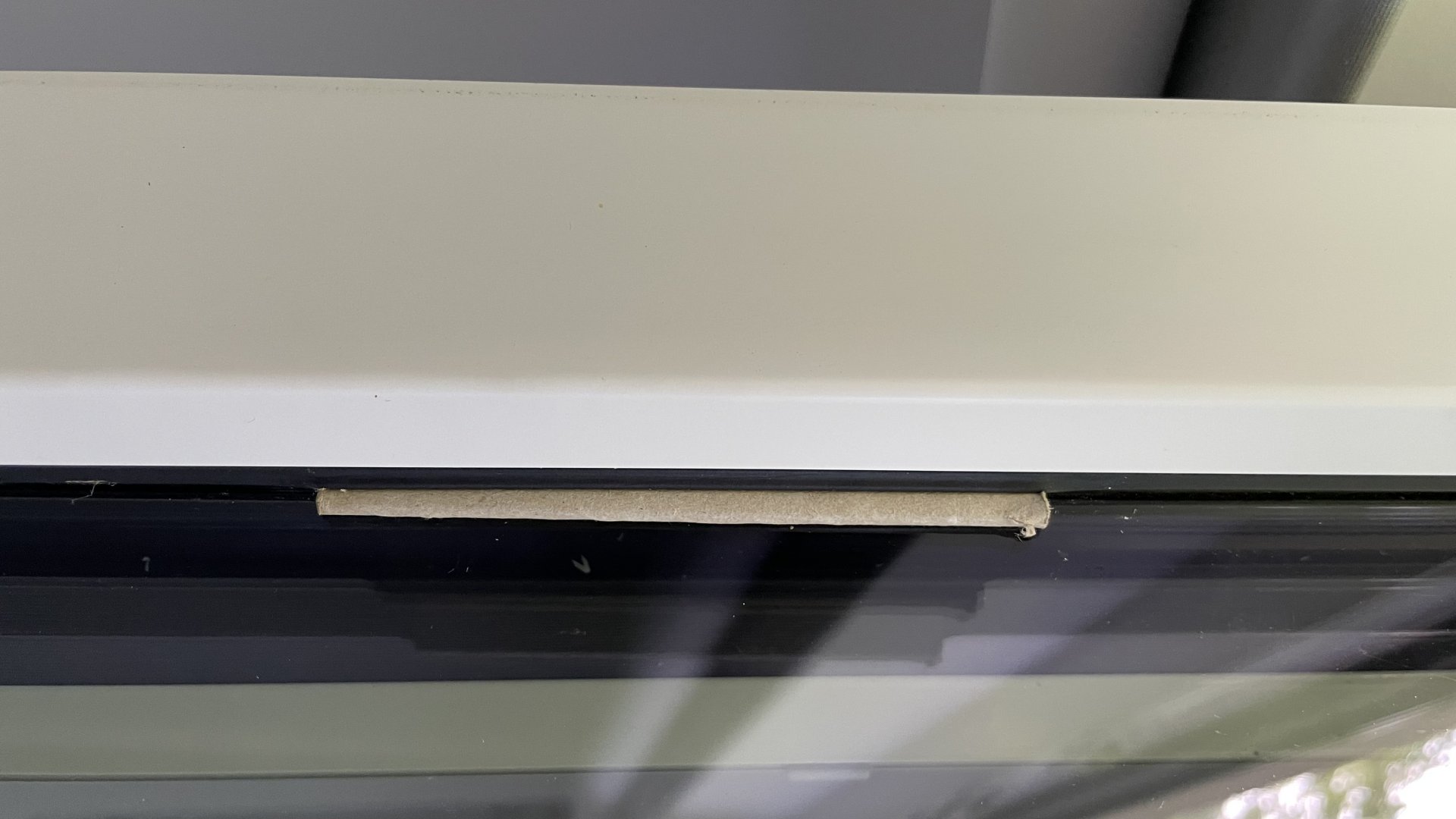 Komische Pappe zwischen Fensterglass und Dichtung