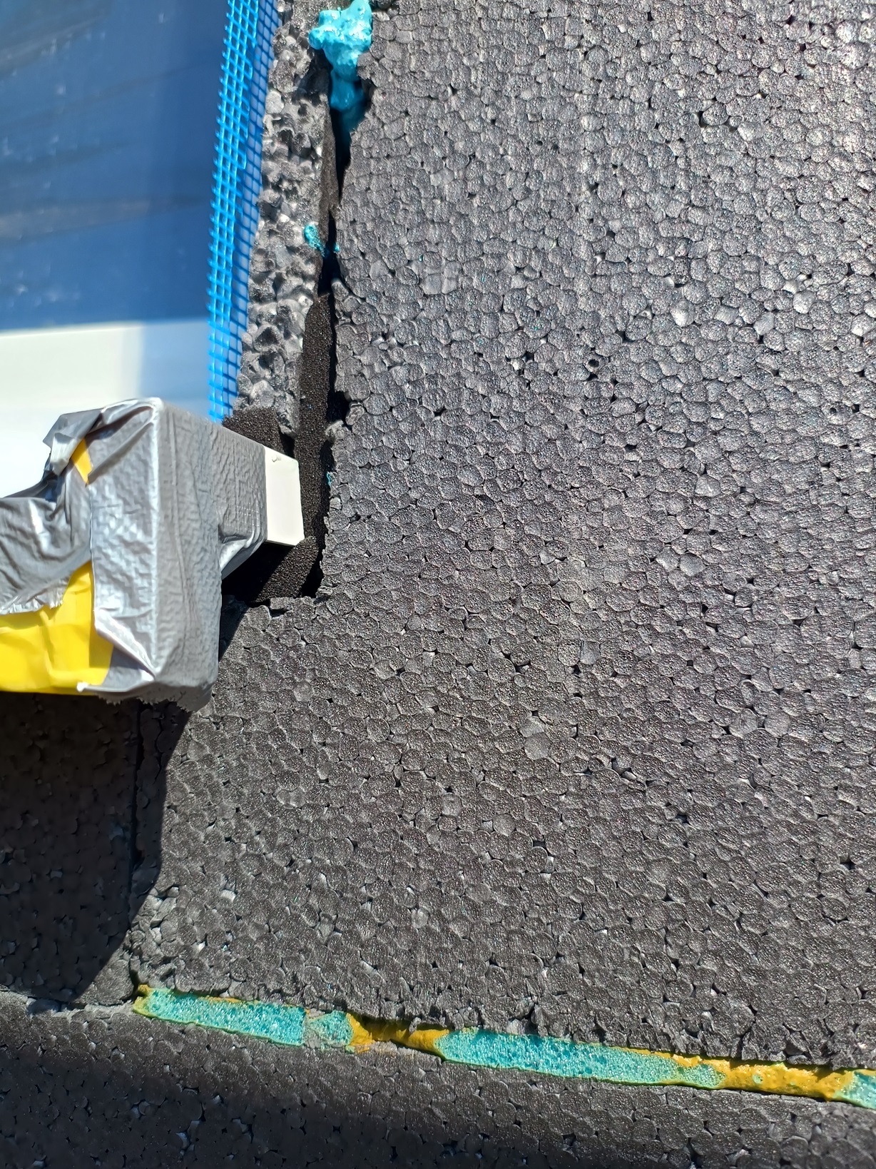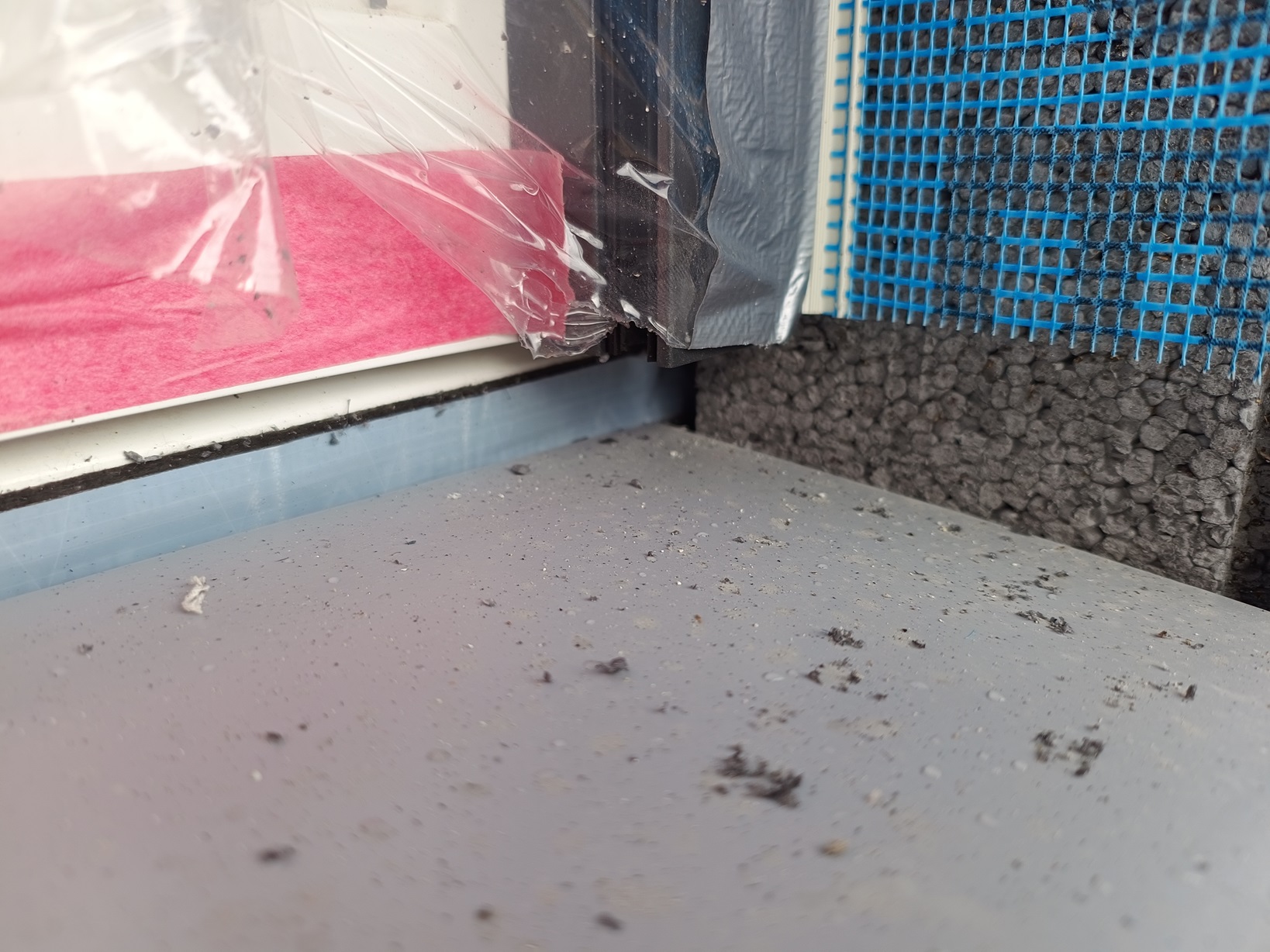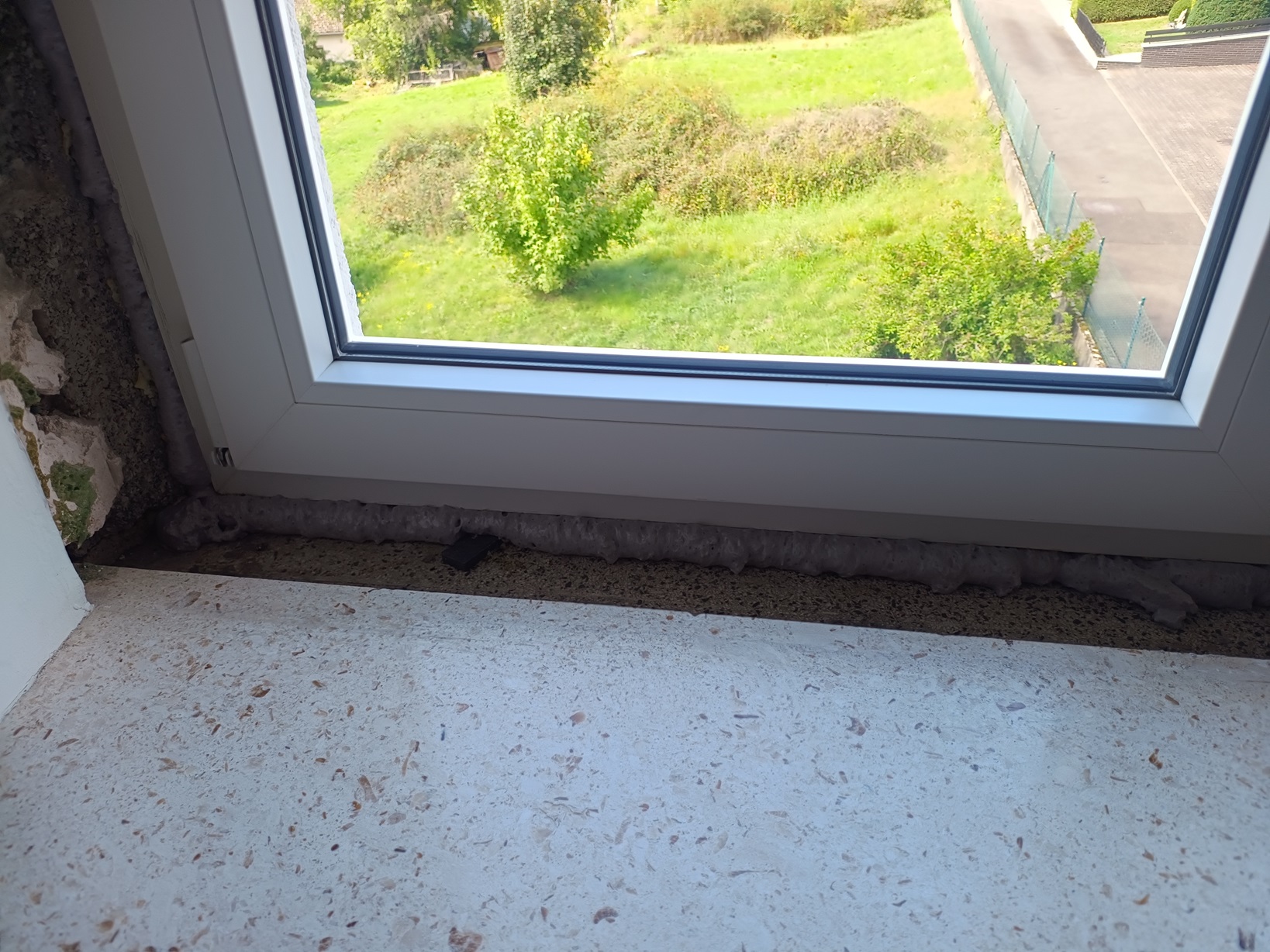 Nun im Zuge der Versetzung weiterer Fenster hat der neue Betrieb hier insofern nachgebessert, als dass er den alten Schaum entfernt und neu den MF 167 eingebracht hat, der ja laut Datenblatt die entsprechenden Dichtigkeiten erbringt.