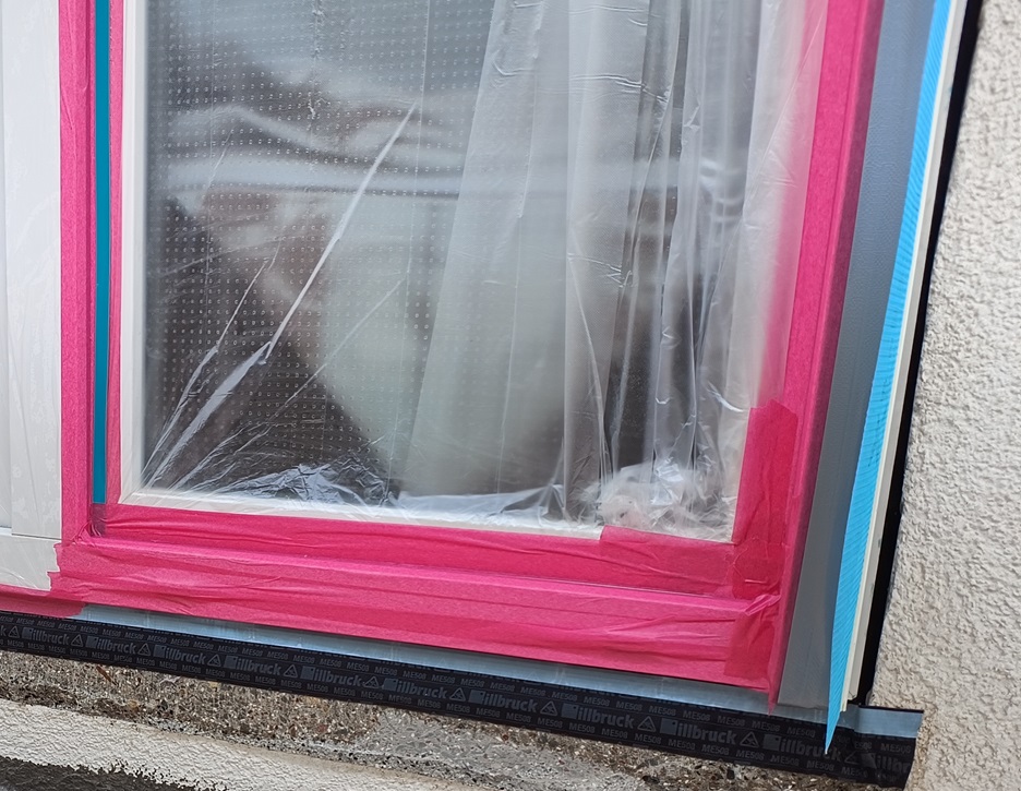 Die von dem 2. Betrieb jetzt erstmals versetzten Fenster wurden, wie erwähnt, zusätzlich außen mit Kompriband abgedichtet und im Bereich der Fensterbank mit einer Illbruck ME 508 Folie.