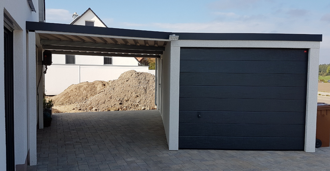 Nicht ganz, das Carport soll an die Wand montiert werden und an der Garage auf eigenen Stützen stehen. Also es wird nicht mit der Garage verbunden.