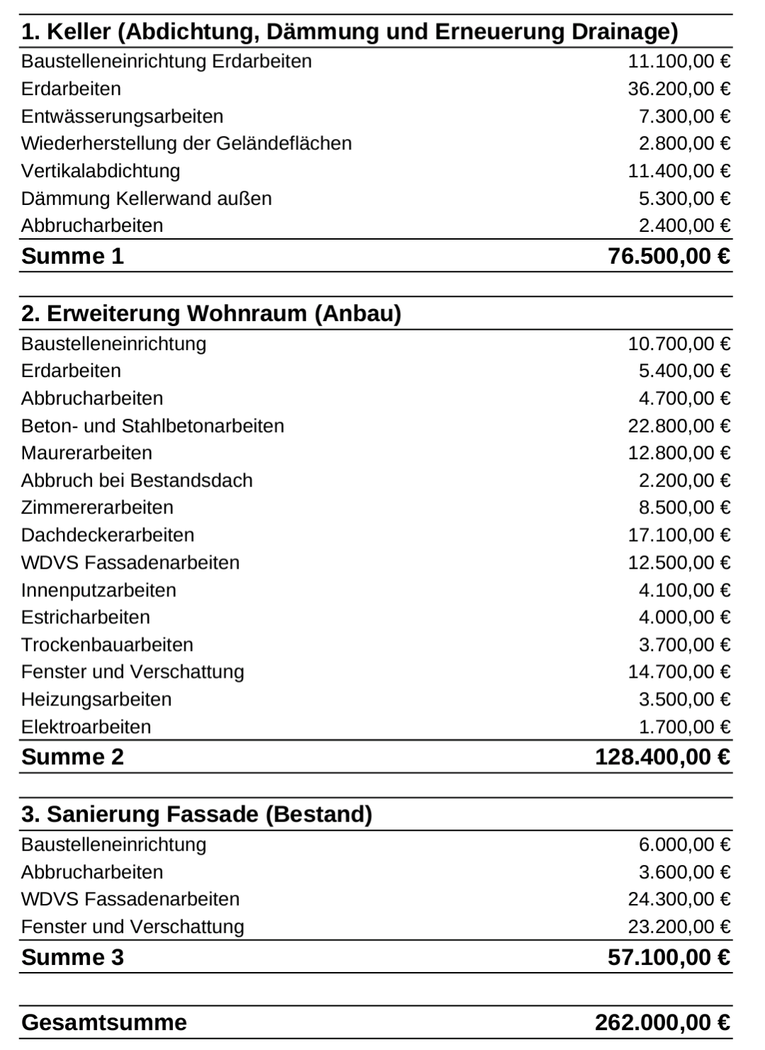 Kosteneinschätzung Komplettsanierung (mit Energie)