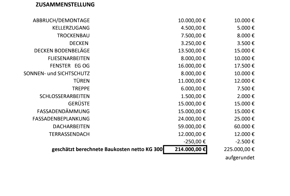 Kostenschätzung Architekt plausibel? Was kann man ohne Architekt machen?