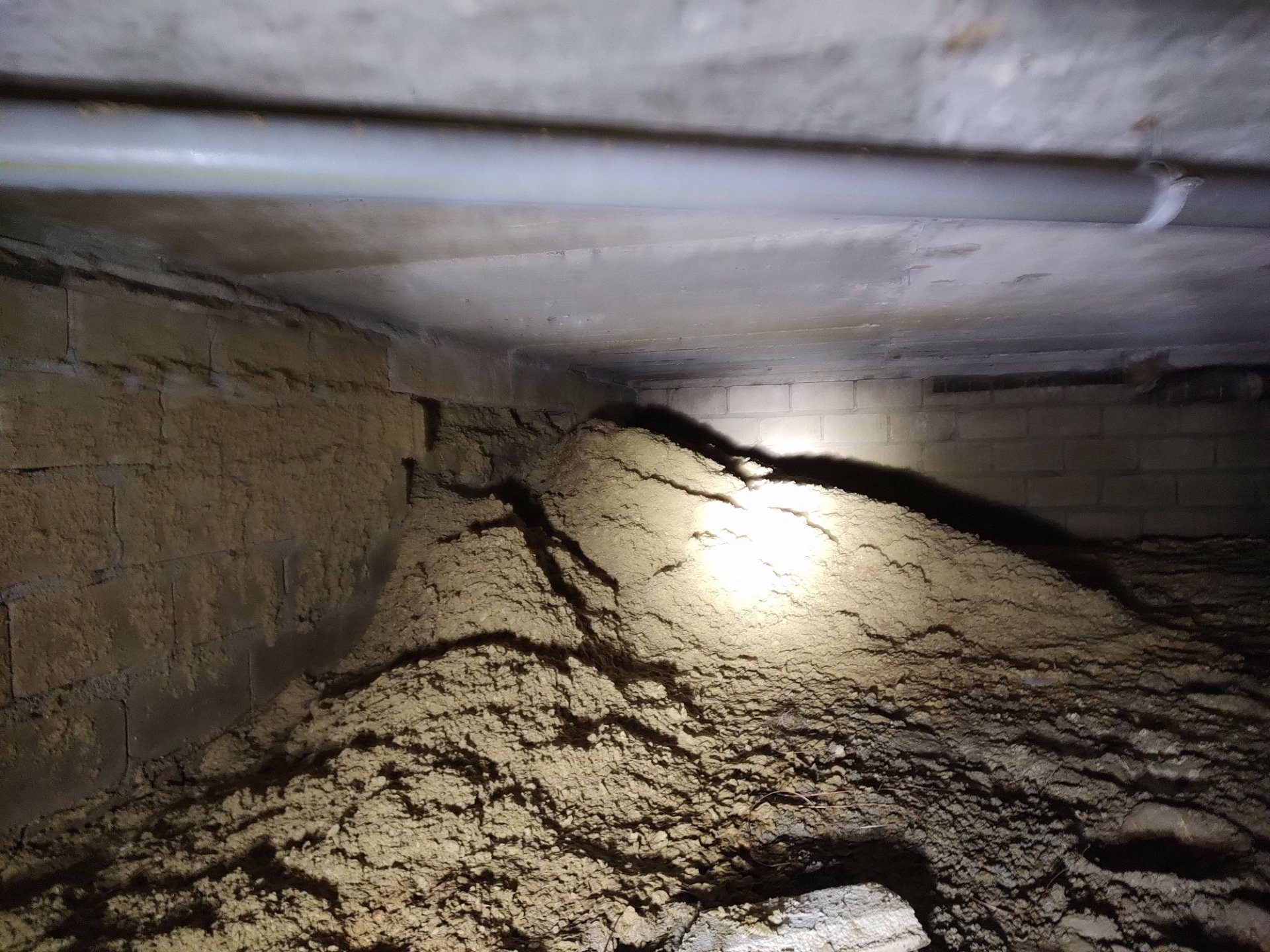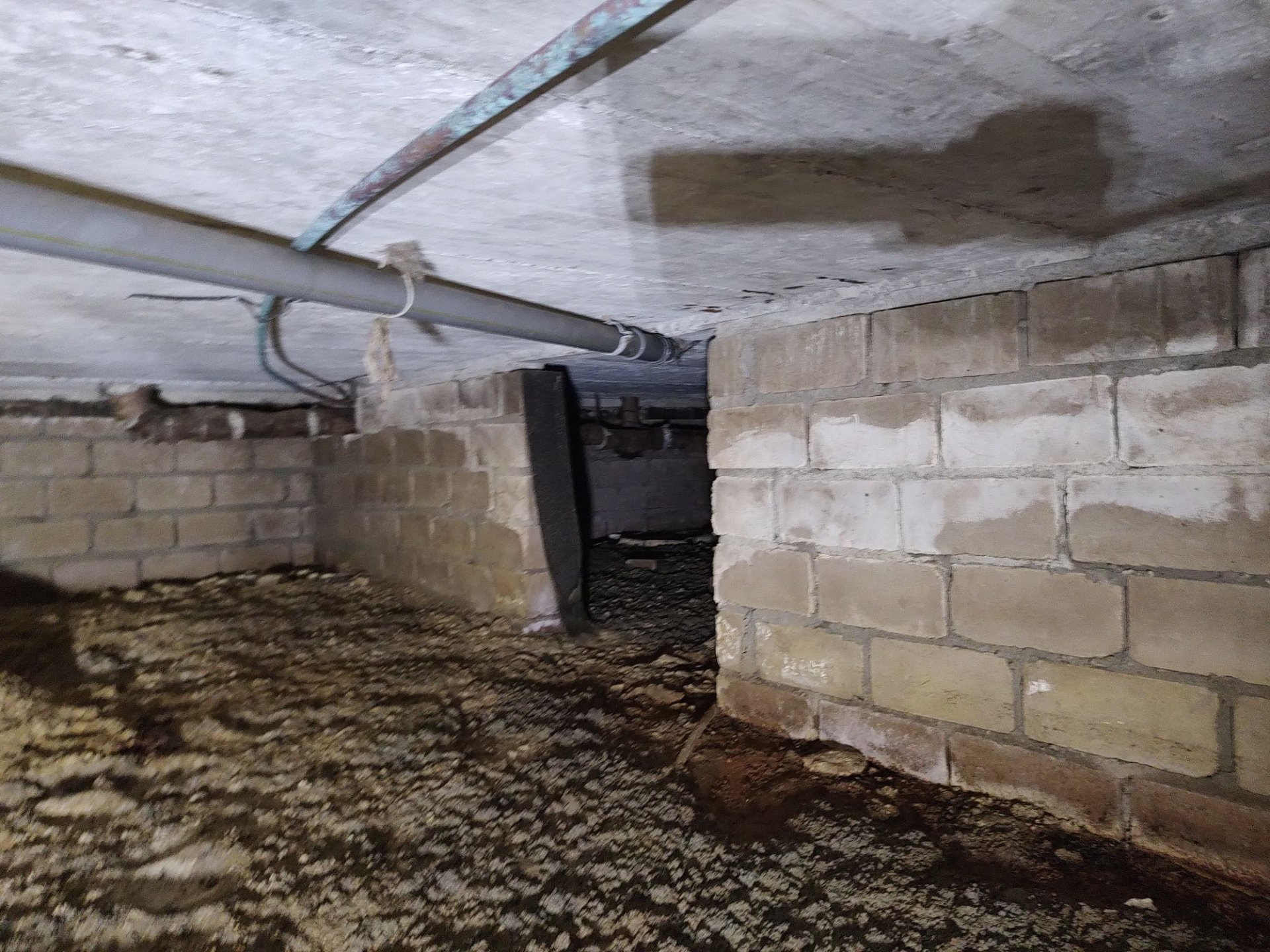 Kriechkeller feucht, Wand gebrochen, stümperhaft repariert?