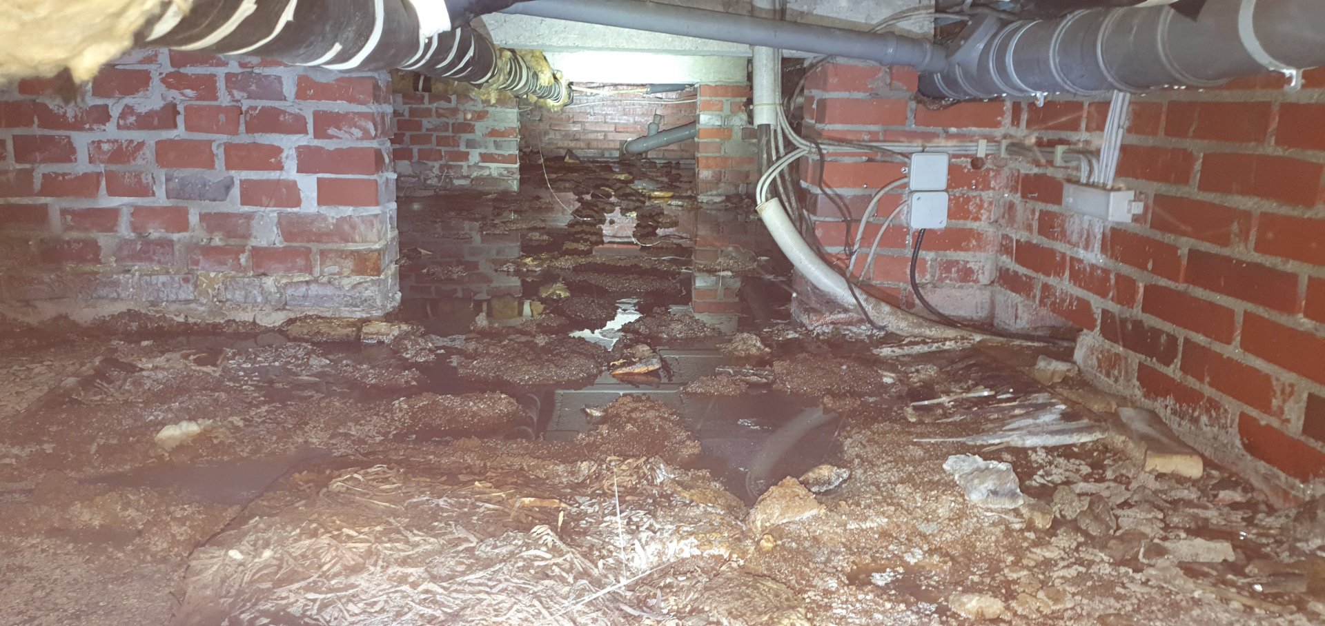 Kriechkeller feucht, Wand gebrochen, stümperhaft repariert?