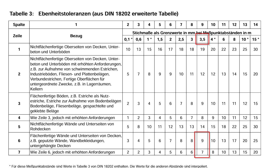 Ist es gemäß DIN 18202 zulässig, dass der Winkel in der oberen rechten Ecke 90,5 Grad beträgt, was über 3,5 Meter eine Abweichung von 3 cm verursacht?