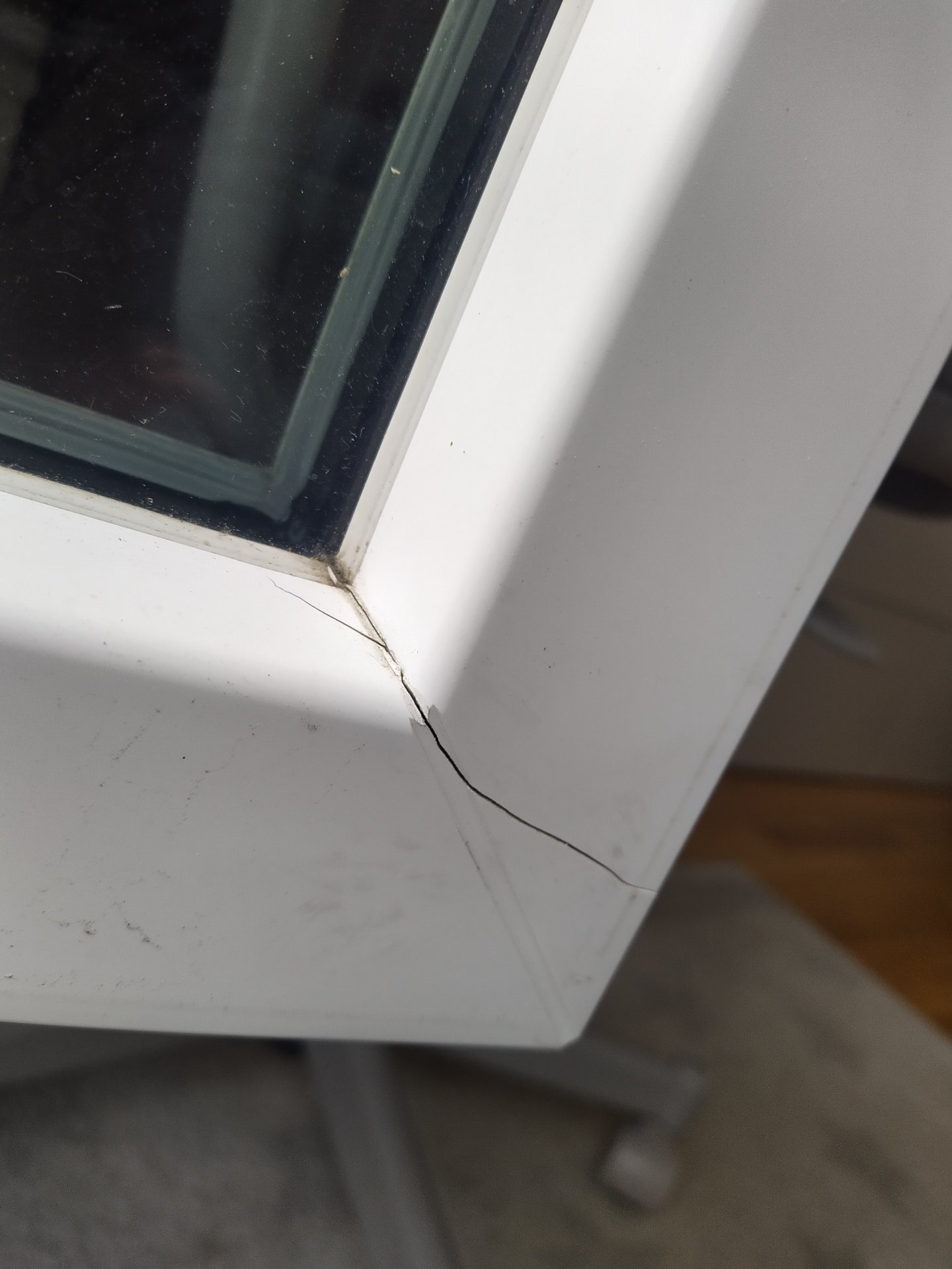 Diskutiere Kunststofffenster gerissen im Fenster/Türen Forum im Bereich Neubau; Hallo Habe ein 2 - fluegliges Kunststoffenster mit Stulp, bei welchem der Dreh- Kipp - Fluegelrahmen neben der Eckschweissnaht, unten,...