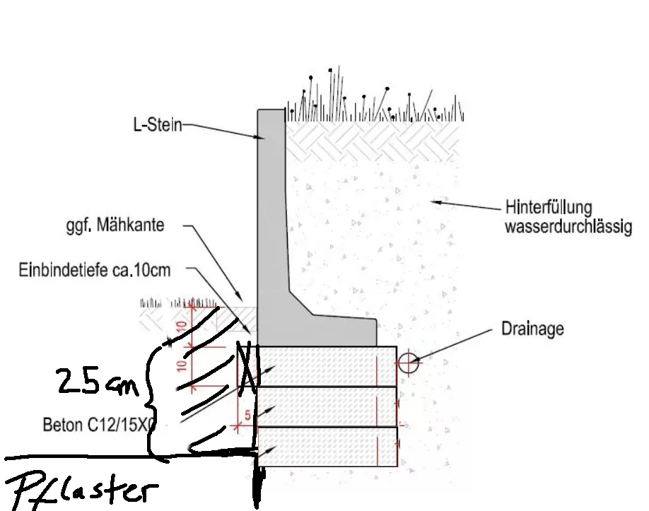 Diskutiere L-Steine mit offenem Betonsockel im Außenanlagen Forum im Bereich Rund um den Garten; Hey zusammen, wir bauen gerade und ich wollte mal fragen, was ihr von der Konstruktion haltet: Der Nachbar (liegt ca. 80-90cm höher als wir)...