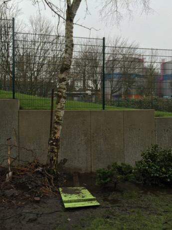 - wasser läuft zwischen L Stein auf Nachbargrundstück,