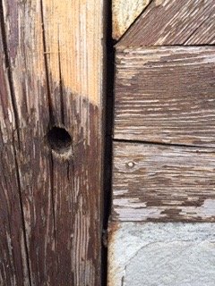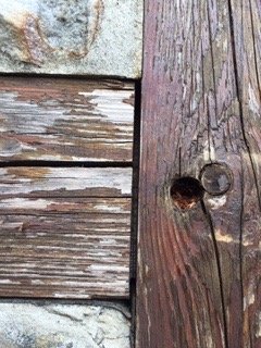 Lärchenfachwerk streichen und Gefache "ausbessern"