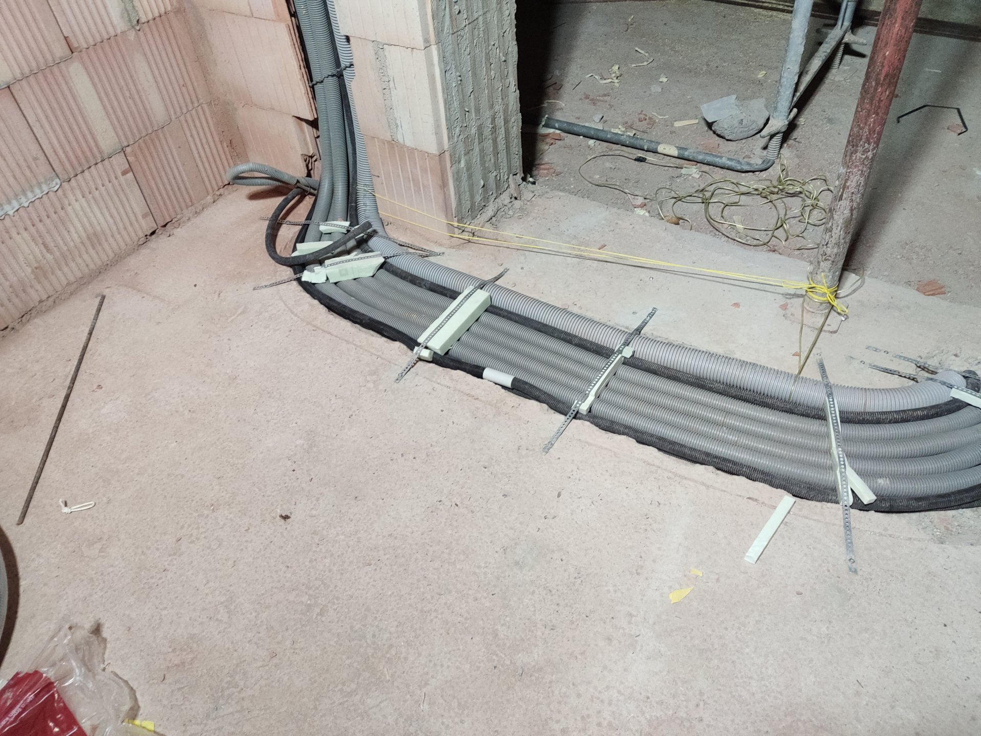 Wie man auf dem Foto sieht haben wir den beton aufgestemmt und die Leerrohre verlegt.