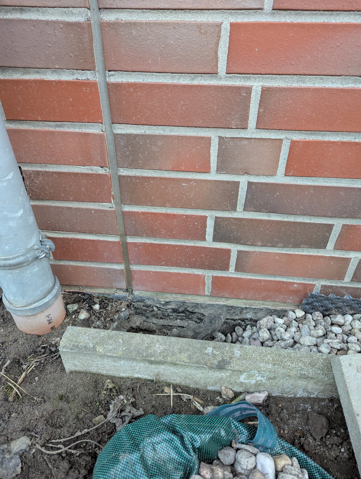 Fassadendämmung mit leichtem Wasserrand im Sockelbereich
