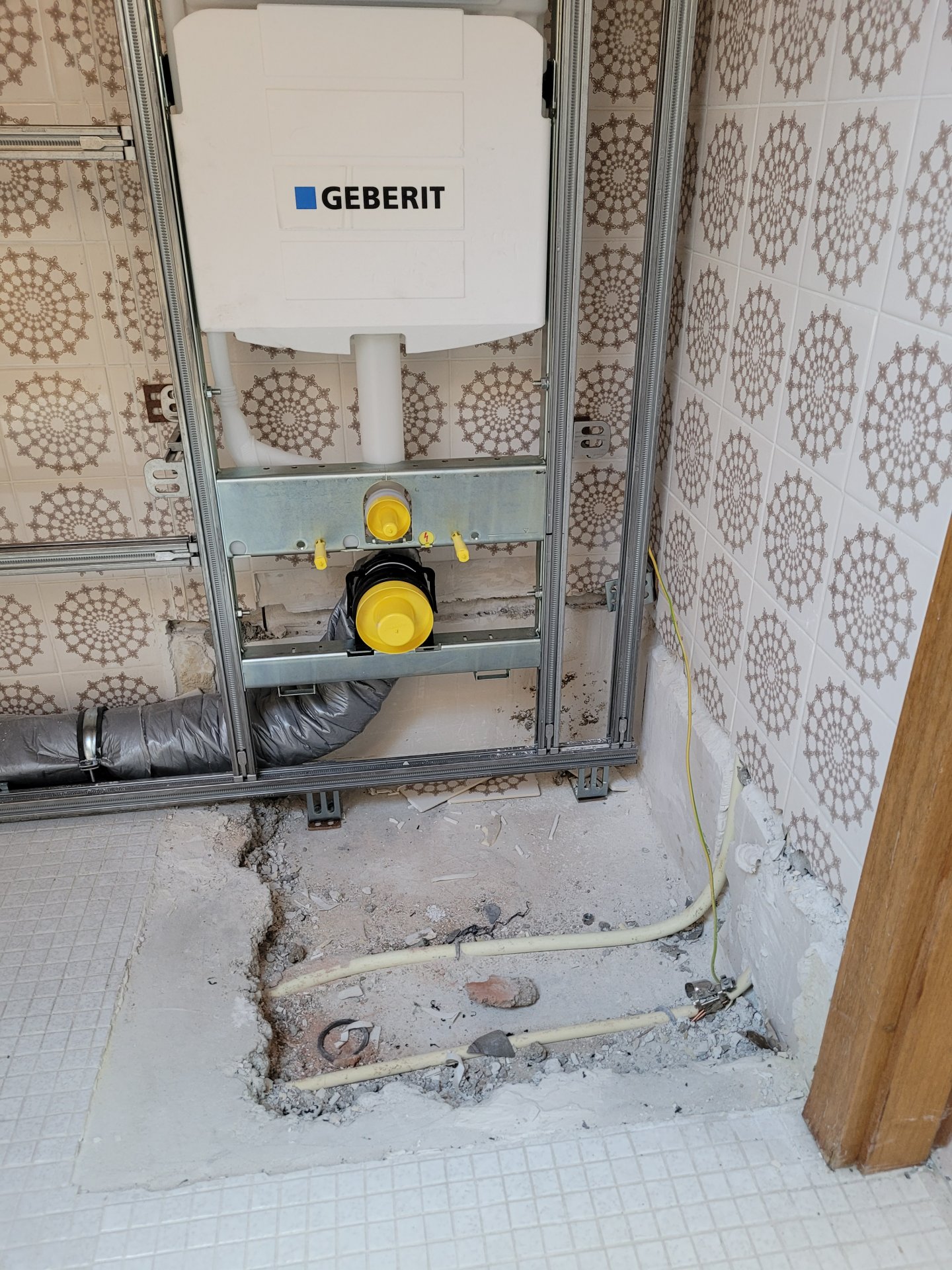 Das ging jetzt relativ schnell, Dusche ist drausen und Vorwandelement für das WC steht auch schon drin. Nur muss ich jetzt das Loch wo die Duschwanne war noch irgendwie zu bekommen. Ich hab dazu auch ein paar Beiträge gelesen, aber bin mir immer noch nicht ganz sicher und um den kompletten Estrich rauszureissen ist es jetzt leider zu spät.