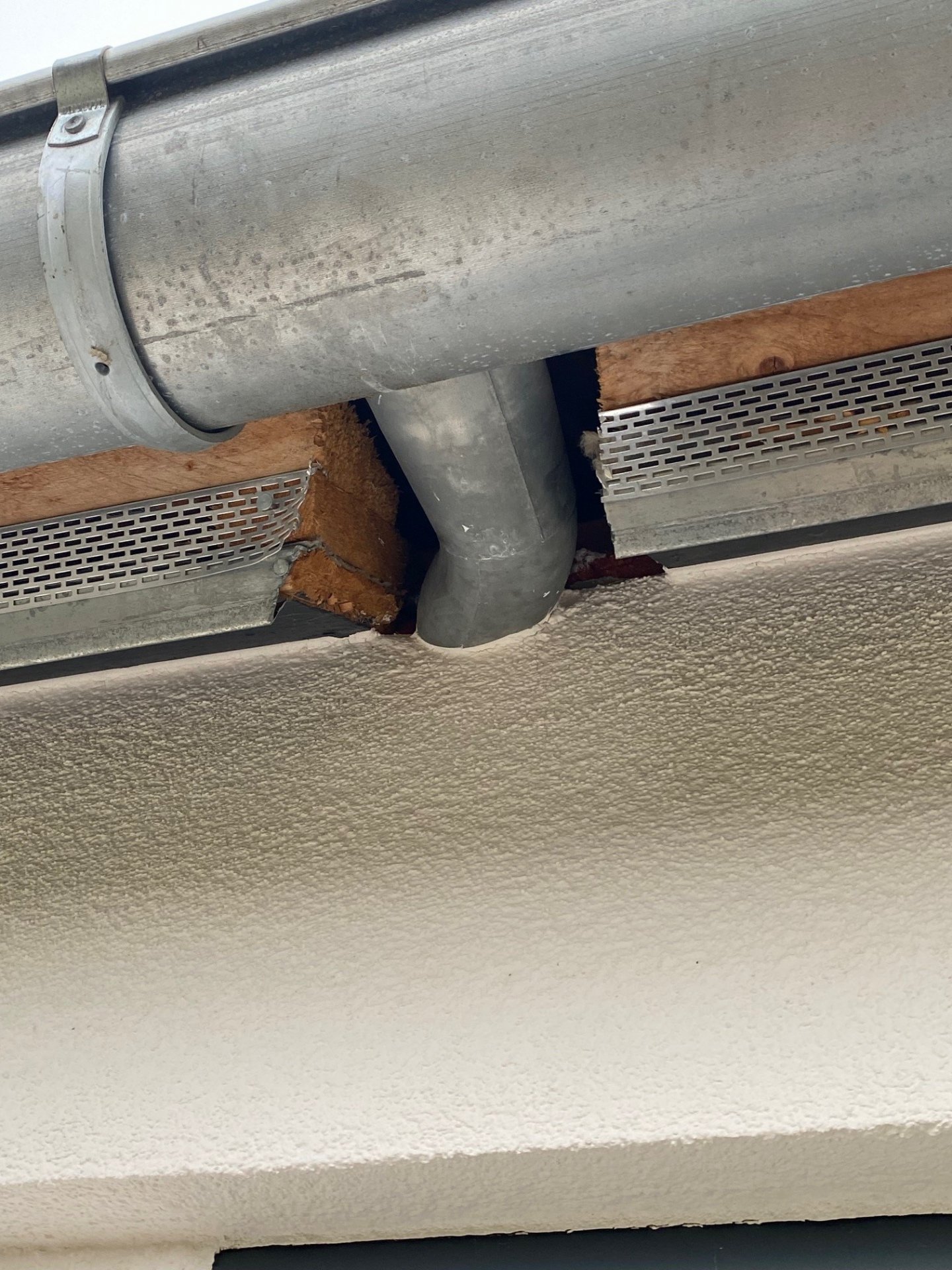 Loch zwischen Dachrinne und Balken bzw. Wand