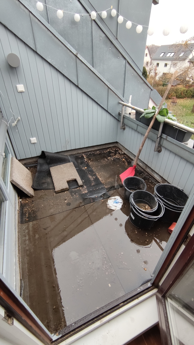 Also Abdichtung runter , Gefälle herstellen , neue Abdichtung drauf plus Ablauf und dann wieder Keramik darauf vllt auf Stelzlager .. höhenmaßig musste das alles passen.