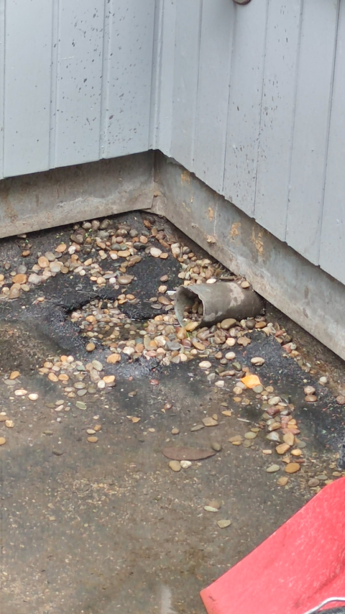 aktuell wurde schon das Kies und Steinplatten abgetragen. Offensichtlich läuft das Wasser garnicht mehr ab und es steht ständig. Meiner Meinung muss das schon immer so gewesen sein, denn die Loggia hat kein Gefälle... eher ein Negatives. Außerdem liegt der Ablauf meines Erachtens zu hoch.