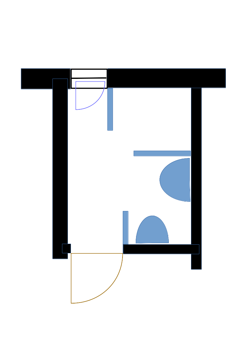 Die Tür habe ich bereits gedreht, dass sie nach außen aufgeht. Nur zur Überbrückung, bis ich das Bad richtig in Angriff nehmen kann.