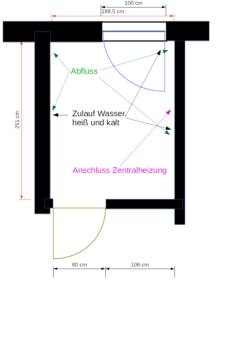 VL heißt Vorlauf der Heizung. Mit Grundriss meine ich, Maße des Raumes mit eingezeichneten Öffnungen der Wand. Also Fenster und Türen mit genauer Bemaßung. Platz evt. Zu- und Abläufe, falls nicht veränderlich.