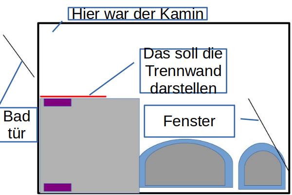 10. In meiner Dusche habe ich einen Sitz, Den möchten die Eltern auch. Das Alter meldet sich. Deshalb möchte ich die zwei in violett angezeichneten Säulen hochmauern.