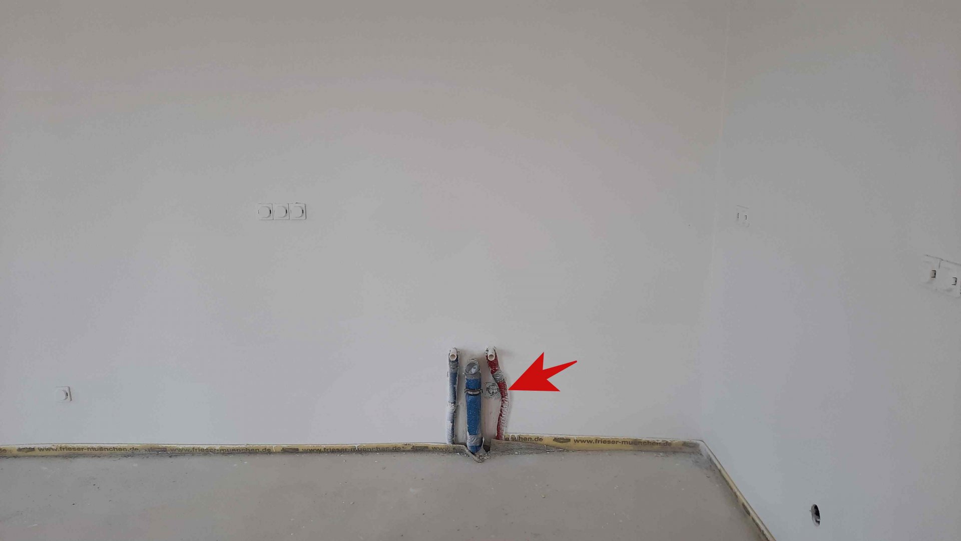 Wenn der Elektriker den Anschluß beim Wasseranschluß unterbringt, vermeidet er, daß später der Anschluß noch einmal versetzt werden muß. So dicht wie hier sollte es aber auch nicht sein.