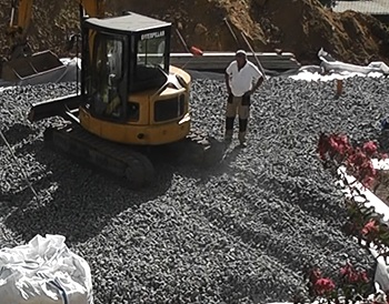 Mini-Bagger in Schaumglassschotter