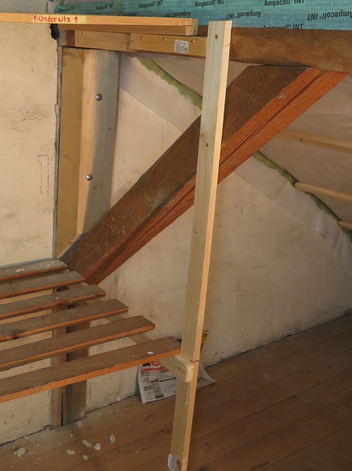 Mittelpfette liegt nach Renovierung nur 18mm auf Wand-Stützpfosten