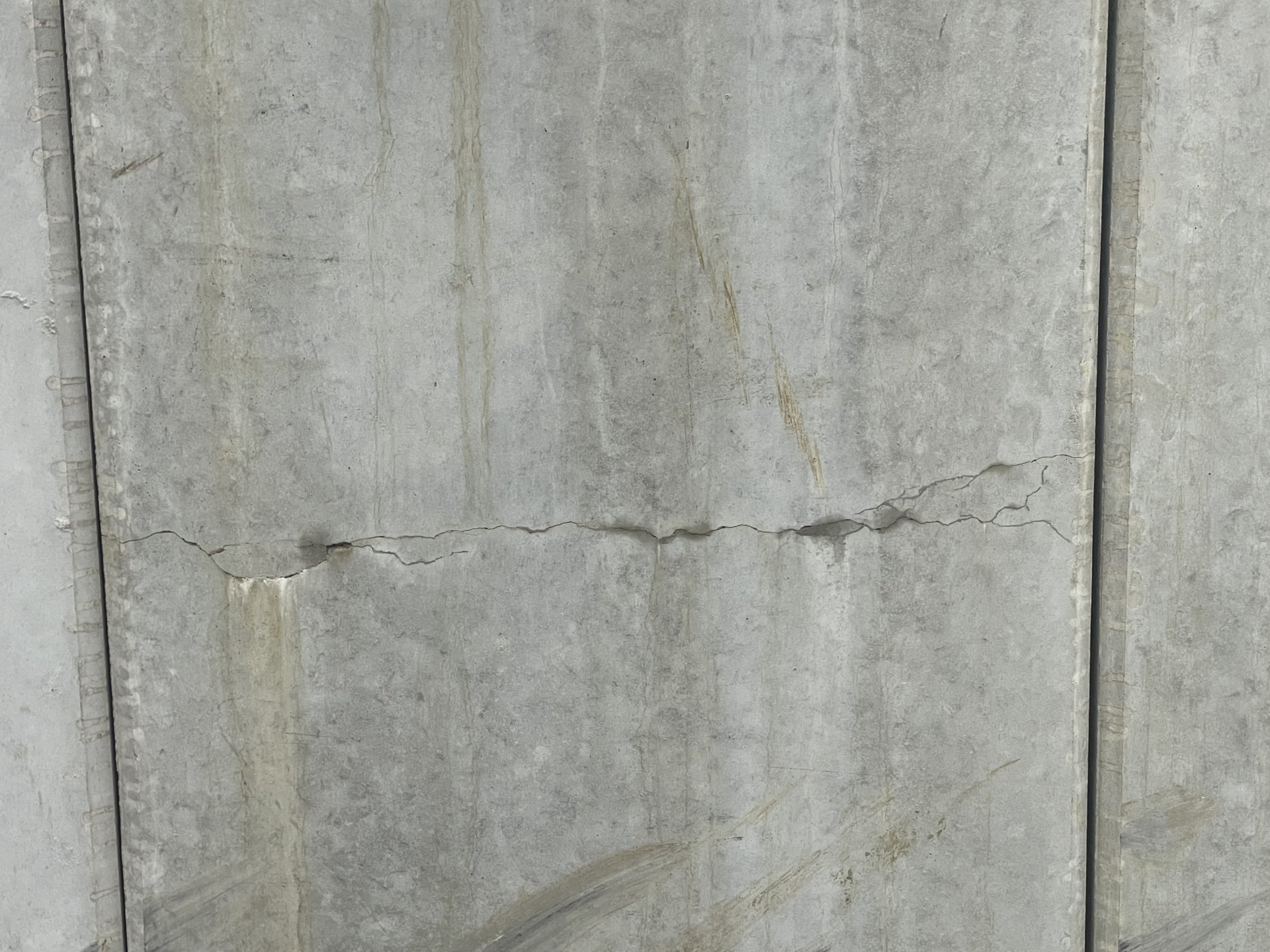 Unabhängig davon dringt dort nun Wasser ein und bildet im Laufe der Jahre sicher weitere Risse und Abplatzungen , zur Ursache einer der Risse sieht nach falscher Lagerung oder Transportschaden aus , weiterhin sicher daß die Risse erst aufgetreten sind ?Und noch etwas Grundsätzliches zumindest auf dem letzten Foto was stellen diese Schlieren dar - eine wenn vereinbart Sichtbeton Optik stellt dies nicht dar.