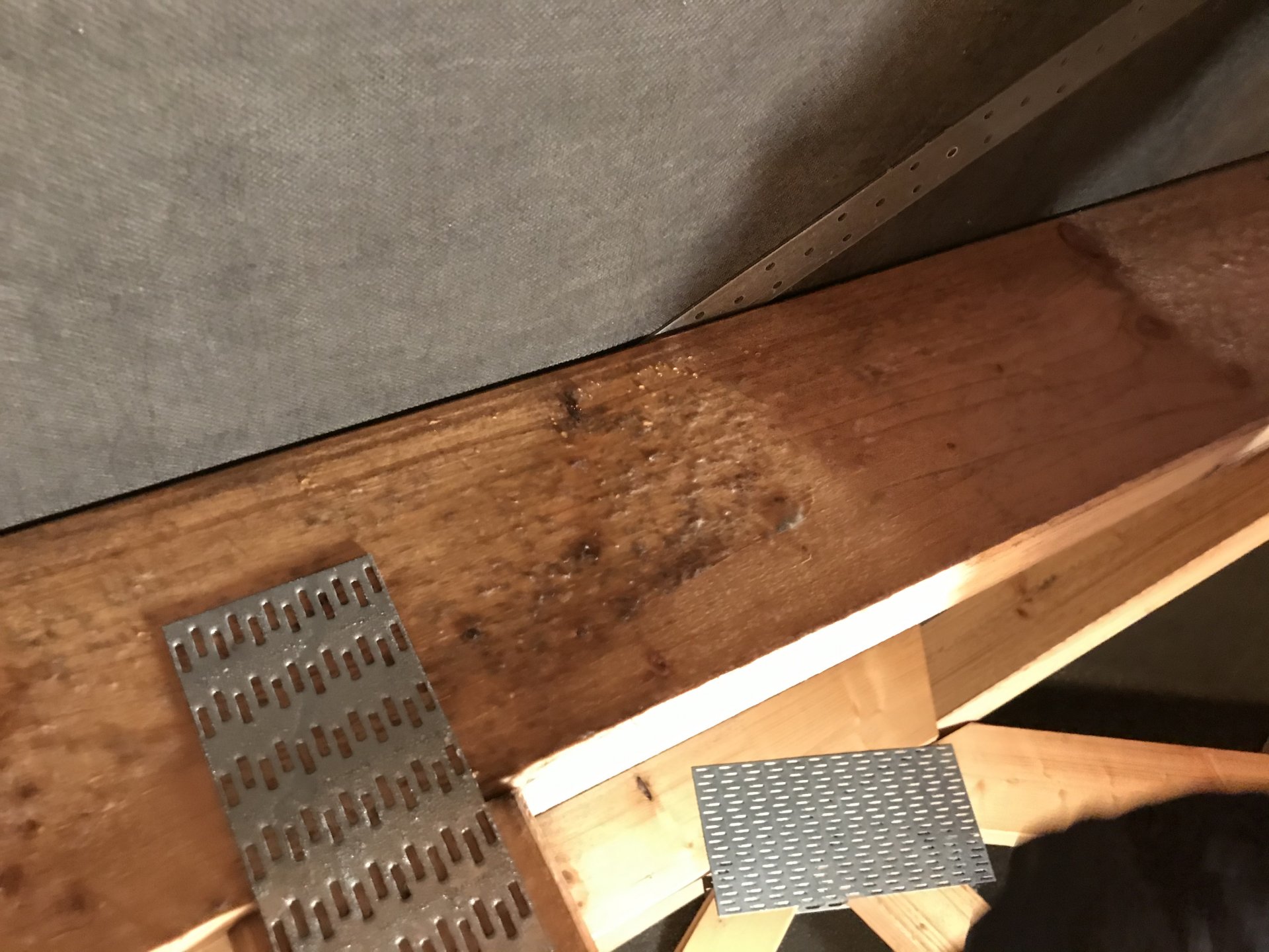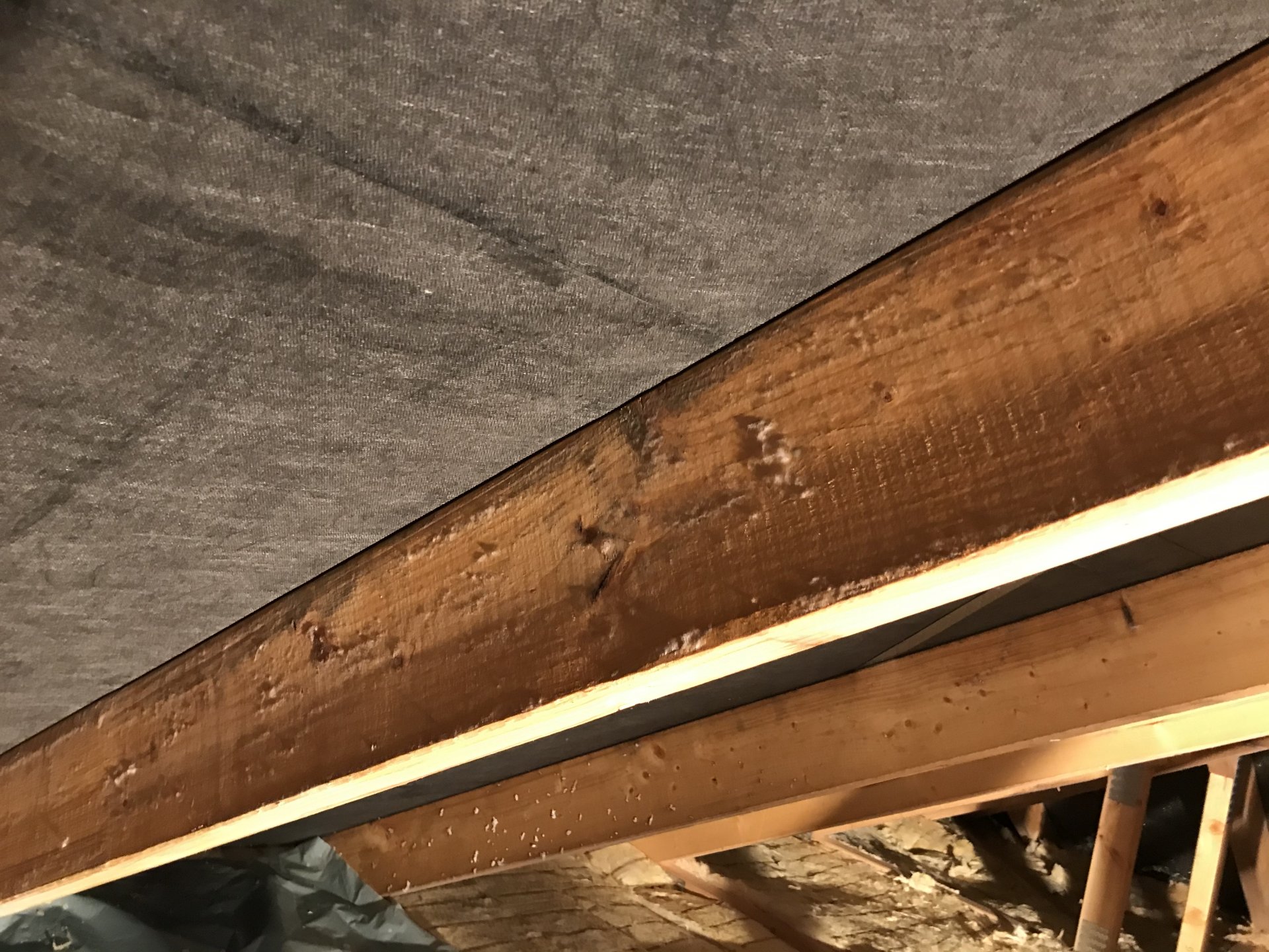 Feuchtigkeit am Fuß des Balkens ungedämmter spitzboden